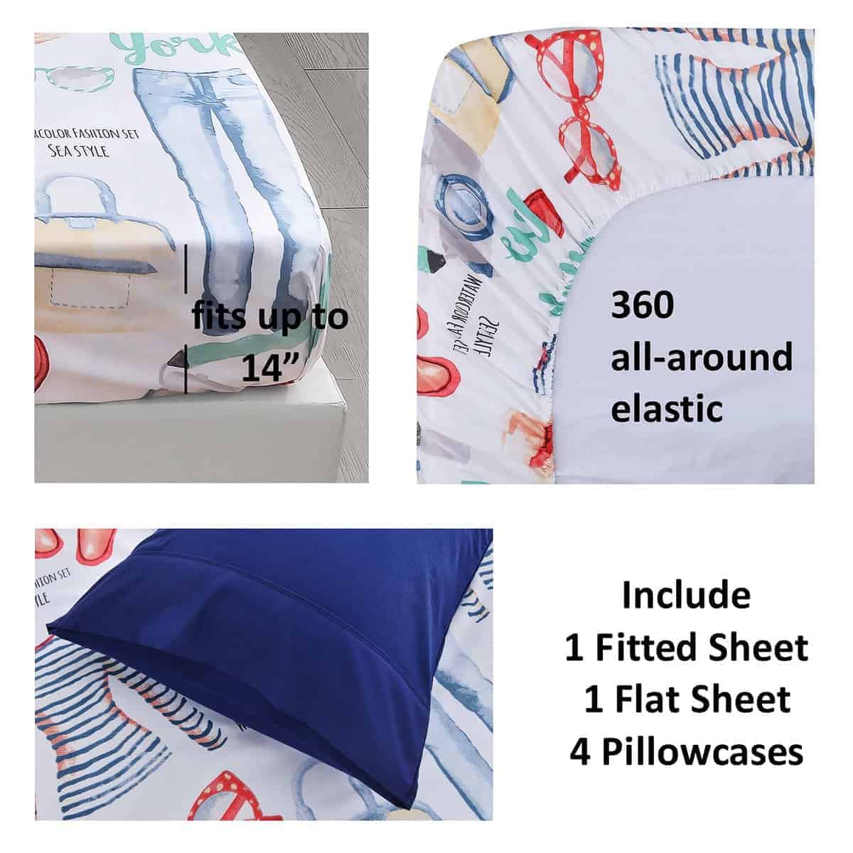 1. MICROFIBRA DOBLE CEPILLADO (95 GSM) para EXTRA SUAVIDAD: El tejido es transpirable, fresco, suave al tacto y gentil con la piel, también es resistente a la decoloración, manchas, encogimiento y arrugas. 2. ELÁSTICOS DE 360 GRADOS: La Sábana Ajustable está completamente elasticada y se adapta a colchones de hasta 14 pulgadas de profundidad, cualquier bolsillo de colchón más pequeño de 14 pulgadas se ajustará y se mantendrá en buena forma, el Set de Sábanas Tamaño Queen incluye 1 sábana ajustable 60″x80″, 1 sábana plana 90″x101″, 4 fundas de almohada con cierre de sobre 20″x30″. 3. FABRICADO EN UNA FÁBRICA ESTÁNDAR OEKO-TEX 100: Garantiza la confianza del cliente y una alta seguridad del producto, FÁCIL CUIDADO para lavar a máquina en agua fría, secar a temperatura baja, no lavar en seco y no usar lejía. 4. CONFORT DE TODAS LAS ESTACIONES: American Home Collection se compromete a brindarle la mejor experiencia, estas son unas de las sábanas más suaves y de mejor valor, además, estas suaves sábanas son duraderas, refresque su espacio para dormir con este gran juego de sábanas de gran valor, ya sea que esté preparando su suite principal, cambiando el tema de su habitación de invitados o comprando nuevas sábanas para sus hijos y familia, estas sábanas serán una gran opción para conciliar el sueño, también es una gran idea de regalo para cualquier ocasión o festividad. 5. VARIAS OPCIONES DE PATRONES DE IMPRESIÓN: Disponible en tamaños Twin, Full, Queen y King con la opción de Mariposas, Botánico, Damasco, Floral, Flores, Frutas, Geométrico, Mandala, Retazos, Paisley, Lunares, Quatrefoil, Sólido, Rayas, Árbol