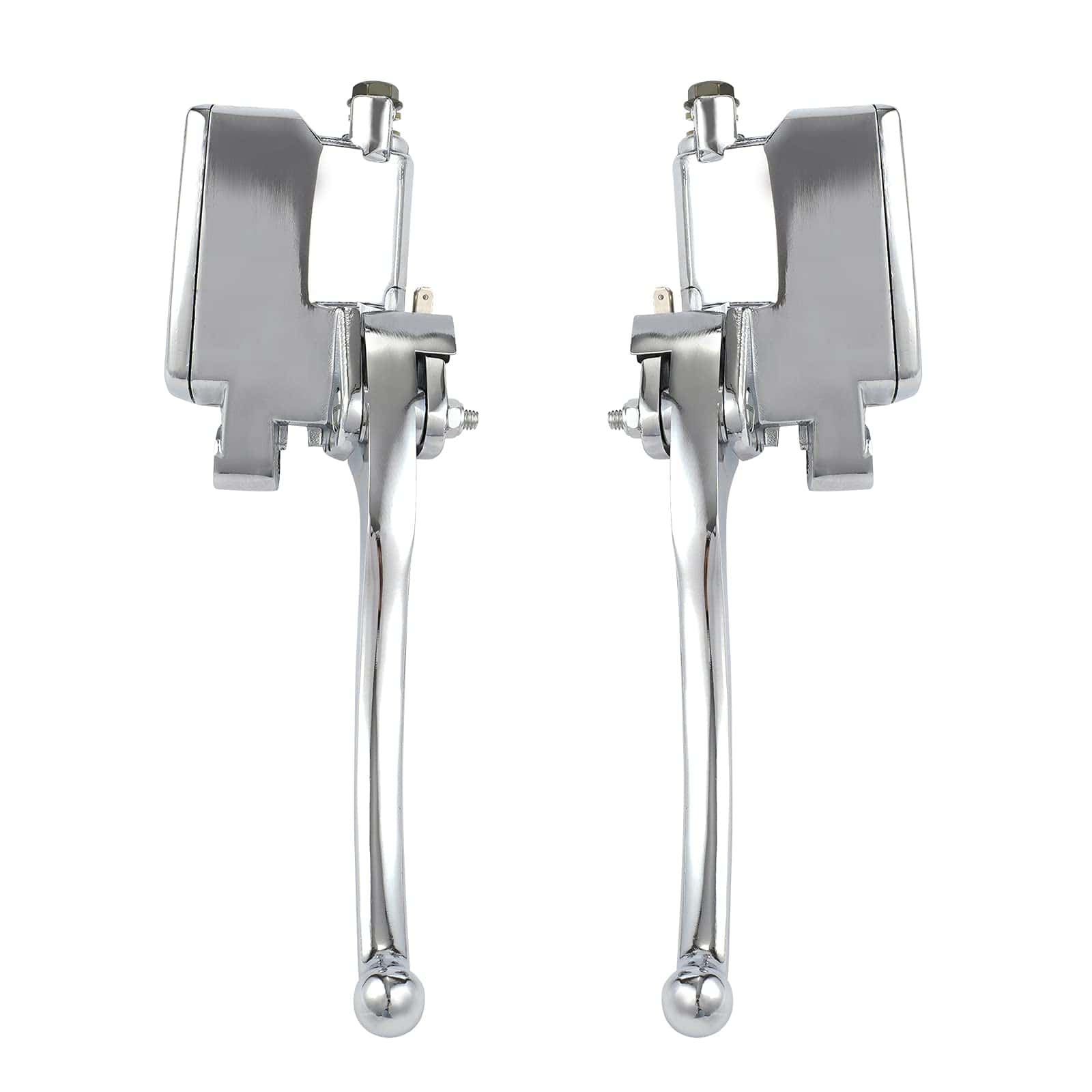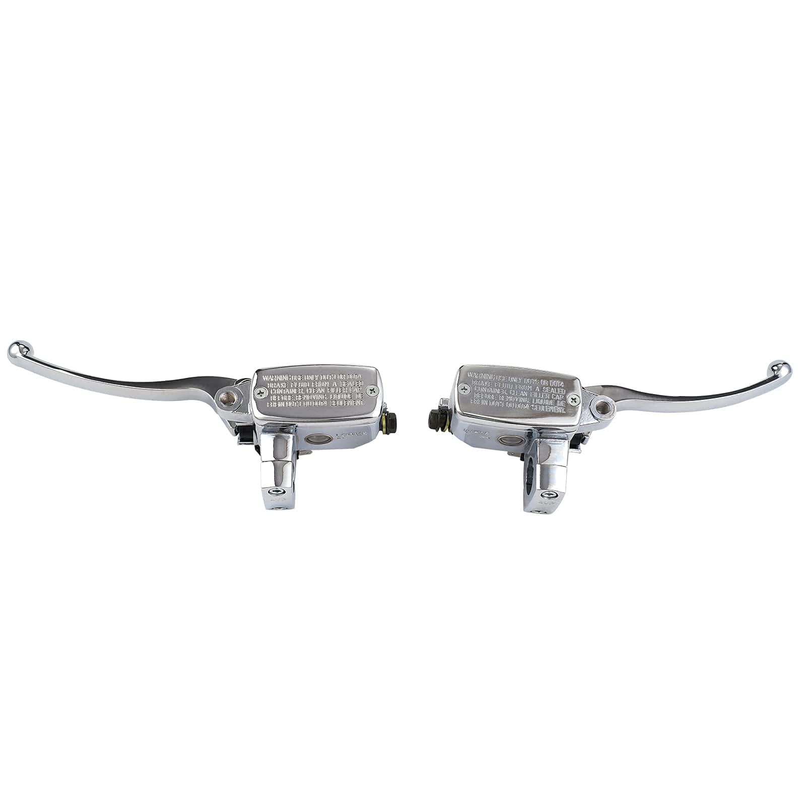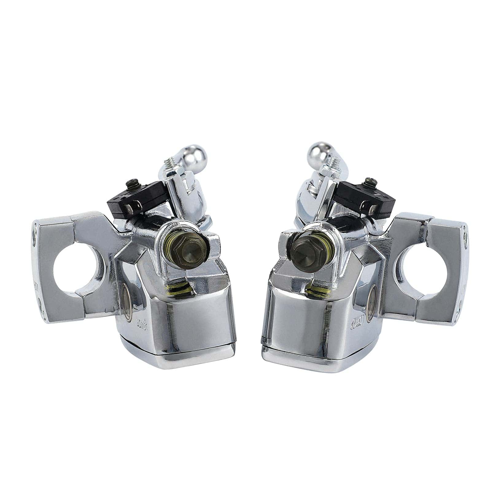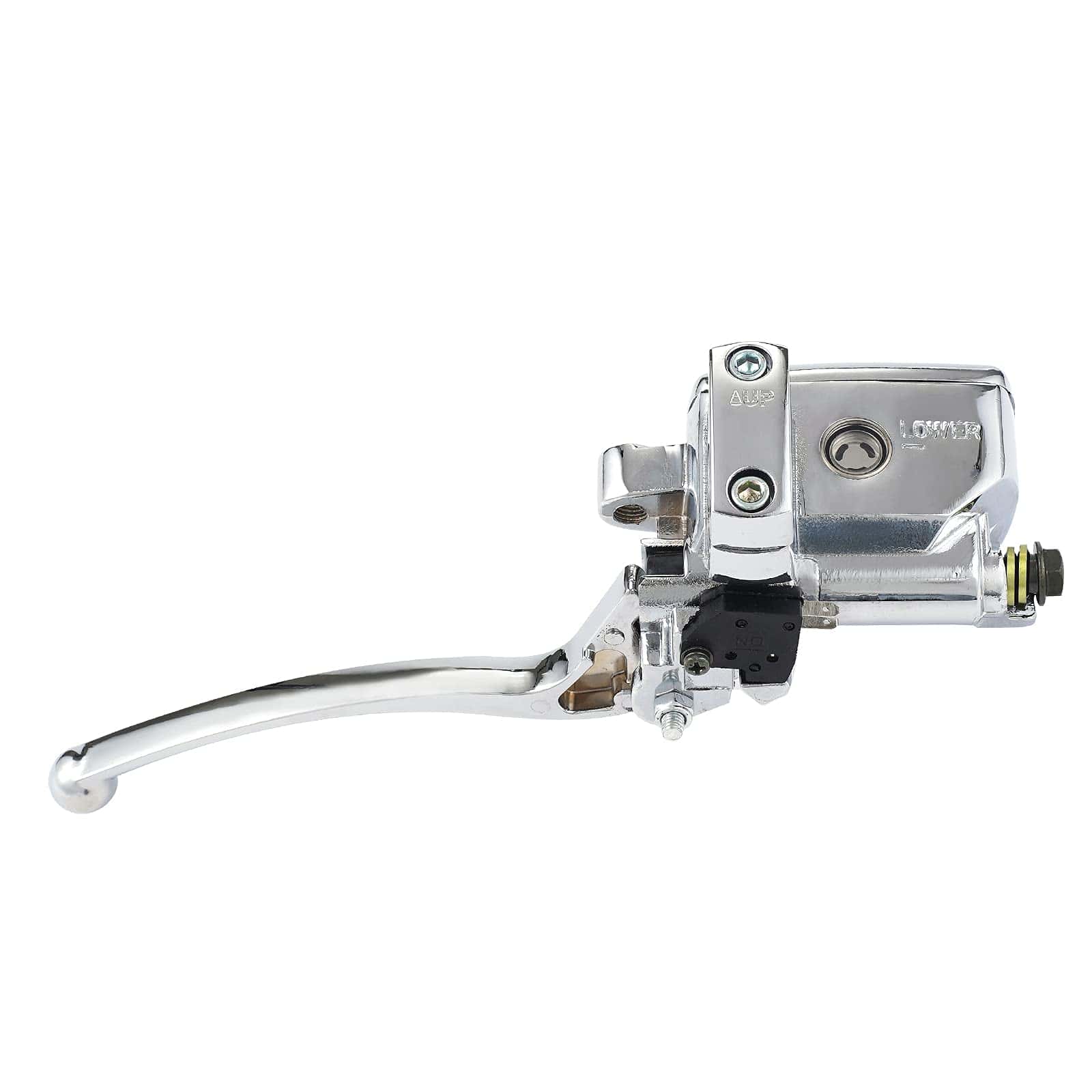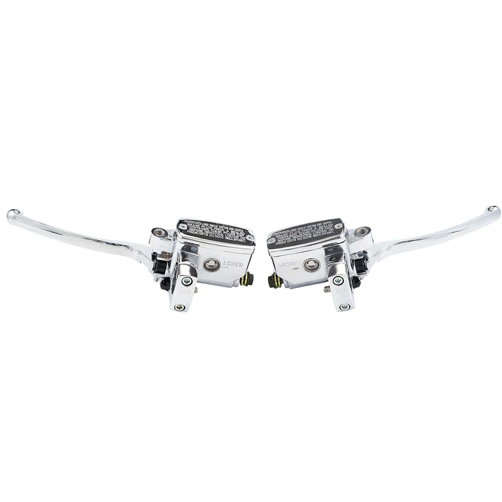 Amhousejoy Universal Motorcycle 1» 25mm Handlebar Hydraulic Brake Master Cylinder Clutch Lever Left & Right Set es un juego de cilindro maestro de freno de embrague de motocicleta que se adapta a la mayoría de las motocicletas con manillares de freno de 1 pulgada (25mm) como Honda Yamaha Suzuki. Está producido en estricto cumplimiento con los estándares originales de fábrica y está realizado en aleación de aluminio, lo que lo hace más ligero y con mejor resistencia a la corrosión que uno de hierro fundido. El paquete incluye 1 x Cilindro maestro de freno de embrague izquierdo + 1 x Cilindro maestro de freno derecho de motocicleta. Con una garantía de devolución de dinero, puede comprar con confianza y estamos disponibles para brindarle cualquier ayuda que pueda necesitar.