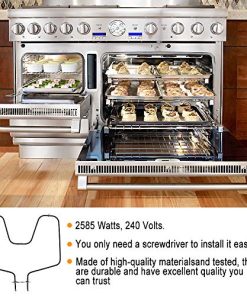 1. ESPECIFICACIONES: AMI PARTES wb44k10005 para horno ge elemento de horneado WB44K10005 (2585 Watts, 240 Voltios) de reemplazo compatible, 17-1/4 pulgadas de largo por 15-1/2 pulgadas de ancho.
