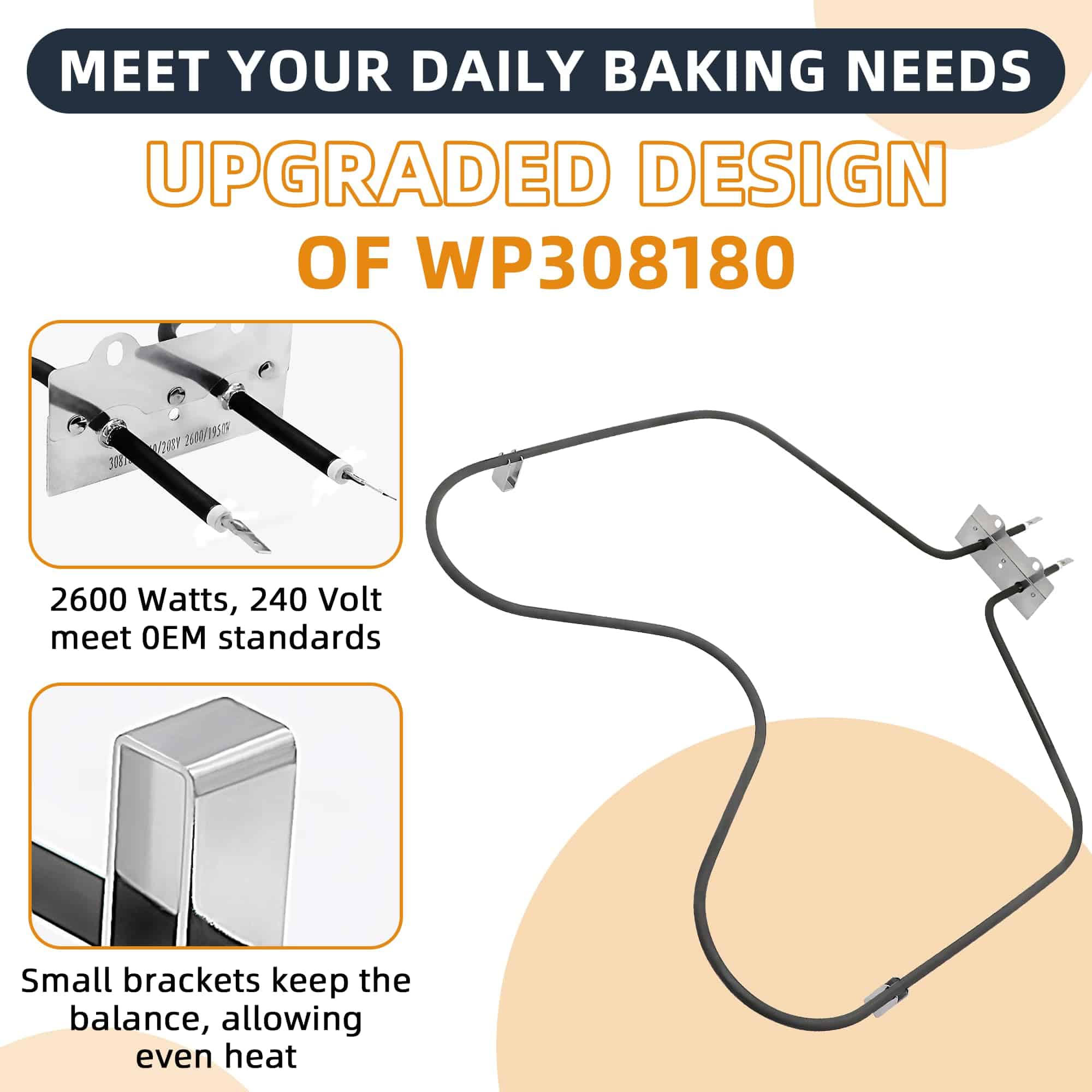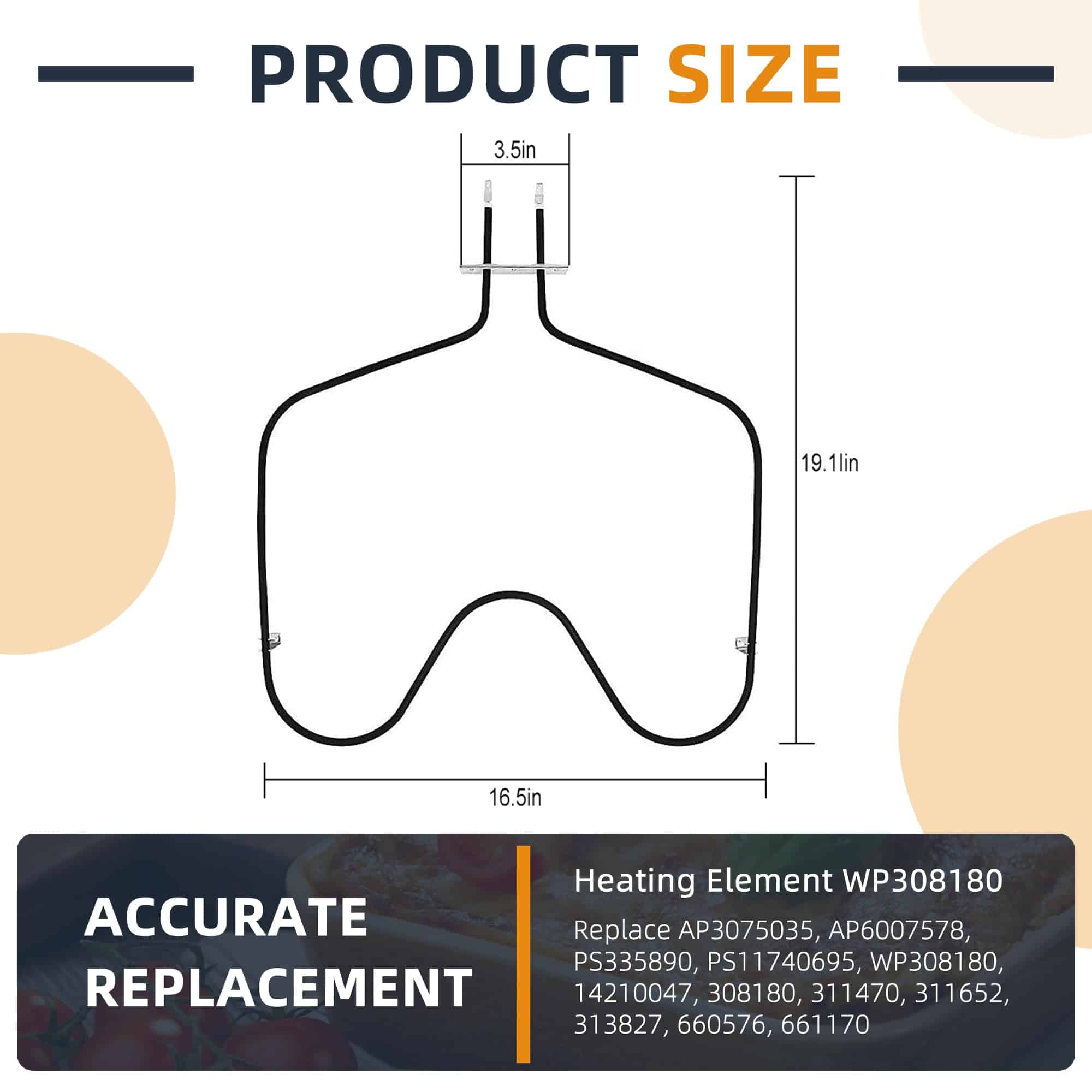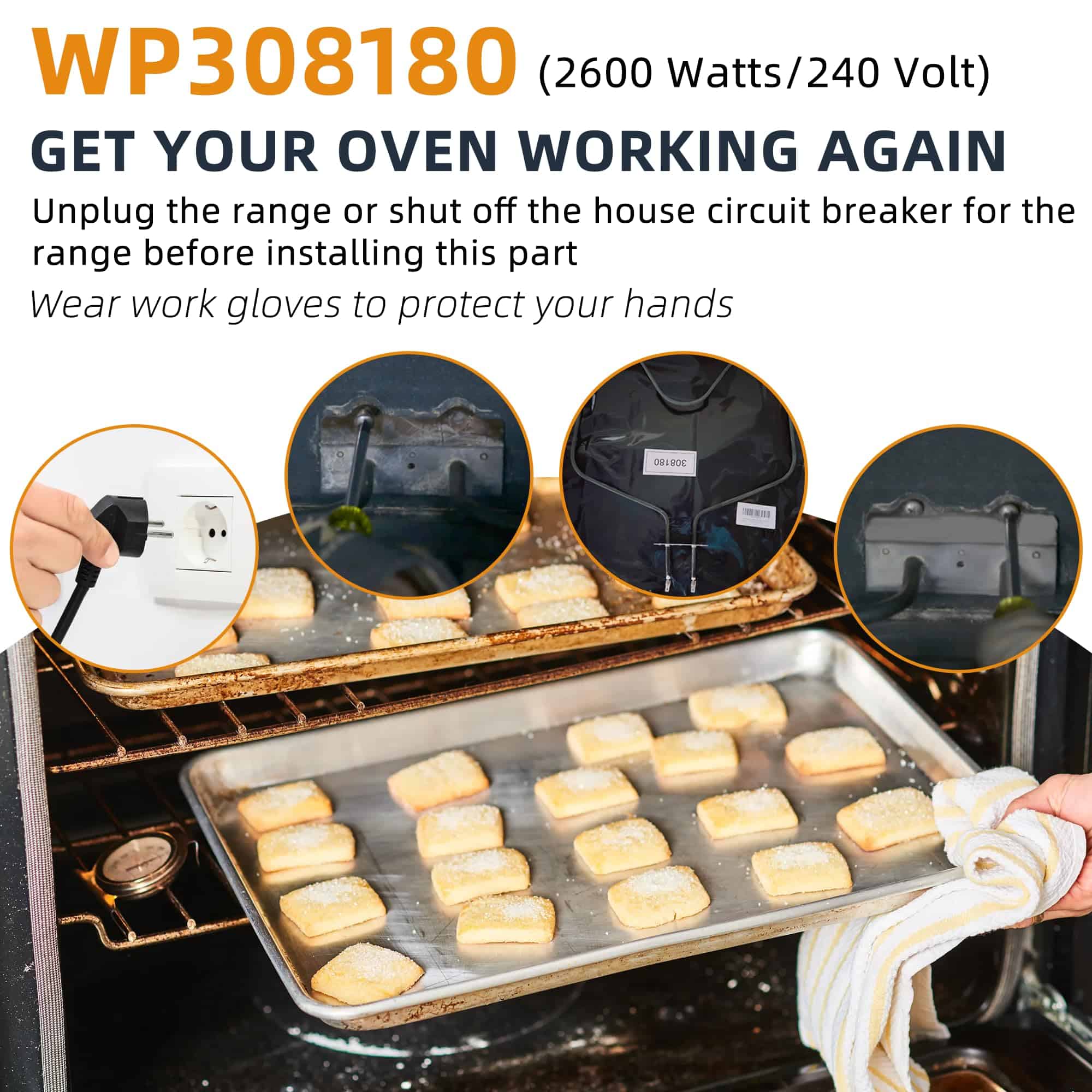 1. NÚMERO DE PIEZA AMI PARTS WP308180 W10308477 (2600 vatios, 240 voltios) Reemplazo del elemento calefactor de horno wpw10308477. 2. NÚMERO DE REEMPLAZO El elemento de horneado WP308180 reemplaza a AP3075035, AP6007578, PS335890, PS11740695, WP308180, 14210047, 308180, 311470, 311652, 313827, 660576, 661170. 3. PAQUETE INCLUYE 1 Elemento de horneado WP308180. Tamaño aproximado es de 16 5/8 x 15-3/4 pulgadas. 4. Referencia de modelo RF3165XVW0, RF395PXXN0, RF363PXDN0, RF363PXDW0, RF363PXPT0, RF363PXPT1, RF363PXVT0, RF3305XXW2, RF330PXXW2, RF330PXYW0, RF333PXPT0, RF333PXVT0, RF335EXPW0, RF3365XWW2, FEP310BL0, FEP310BL1, FEP310BW0, FEP310BW1, FEP310YW0, 6654098450, 6654098452, 6654098890, 6654098910, etc. 5. CALIDAD PREMIUM El elemento de horneado WP308180 está hecho de una aleación de acero inoxidable de níquel de alta calidad y probado cuidadosamente por el fabricante según los estándares OEM para garantizar un rendimiento duradero y efectivo. La logística es rápida. La instalación es conveniente y rápida, ahorrando tiempo y esfuerzo. 6. RESUELVA PROBLEMAS RÁPIDAMENTE AMI da gran importancia a la experiencia de compra del comprador. Estamos aquí sinceramente para usted. Consejos: Corte la energía antes de la instalación.