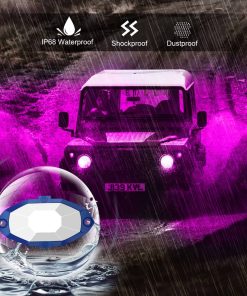 3. IP67 Impermeable y Construcción Sólida como una Roca: Impermeable IP67, a prueba de polvo y golpes y construcción a prueba de óxido, hacen que las luces de roca blancas puedan pasar por una fuerte lluvia o nieve dura. La base LED está hecha de metal pintado que puede soportar altas temperaturas, en comparación con la base LED de plástico, tiene un mejor rendimiento de disipación de calor, prolonga la vida útil del kit de underglow neon.