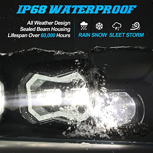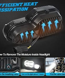 2. Alto Rendimiento – Hecho de dissipador de calor de aluminio de alta pureza, carcasa con acabado en PC. Sistema de enfriamiento y disipación de calor mejorado y dos agujeros de ventilación lo hacen más fácil para deshacerse de la niebla o la humedad. La vida útil de hasta 60,000 horas. Impermeable IP68, nuestro Faro Delantero LED funciona bien en una variedad de condiciones climáticas.
