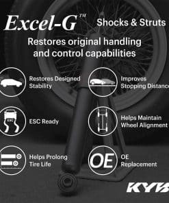 La comodidad al conducir puede ser importante, pero restaurar el Control de la Dirección de un vehículo; estabilidad, frenado, respuesta al cambio de carril y manejo es crítico. Los amortiguadores y struts KYB Excel-G están diseñados para el propósito más importante en términos de rendimiento: Restaurar las capacidades originales del vehículo. KYB es un proveedor líder mundial de amortiguadores y struts para fabricantes de vehículos nuevos y el Excel-G se fabrica en las mismas líneas de ensamblaje OE de KYB, utiliza los mismos componentes de calidad OE y está calibrado para restaurar el rendimiento original diseñado, no para cambiarlo. Esto le ha valido al Excel-G la clasificación: OEA (Equipo Original para el Mercado de Posventa). El KYB Excel-G es un diseño de doble tubo cargado de gas nitrógeno que incluye cada componente de calidad que incluyen nuestros productos OEM globales.