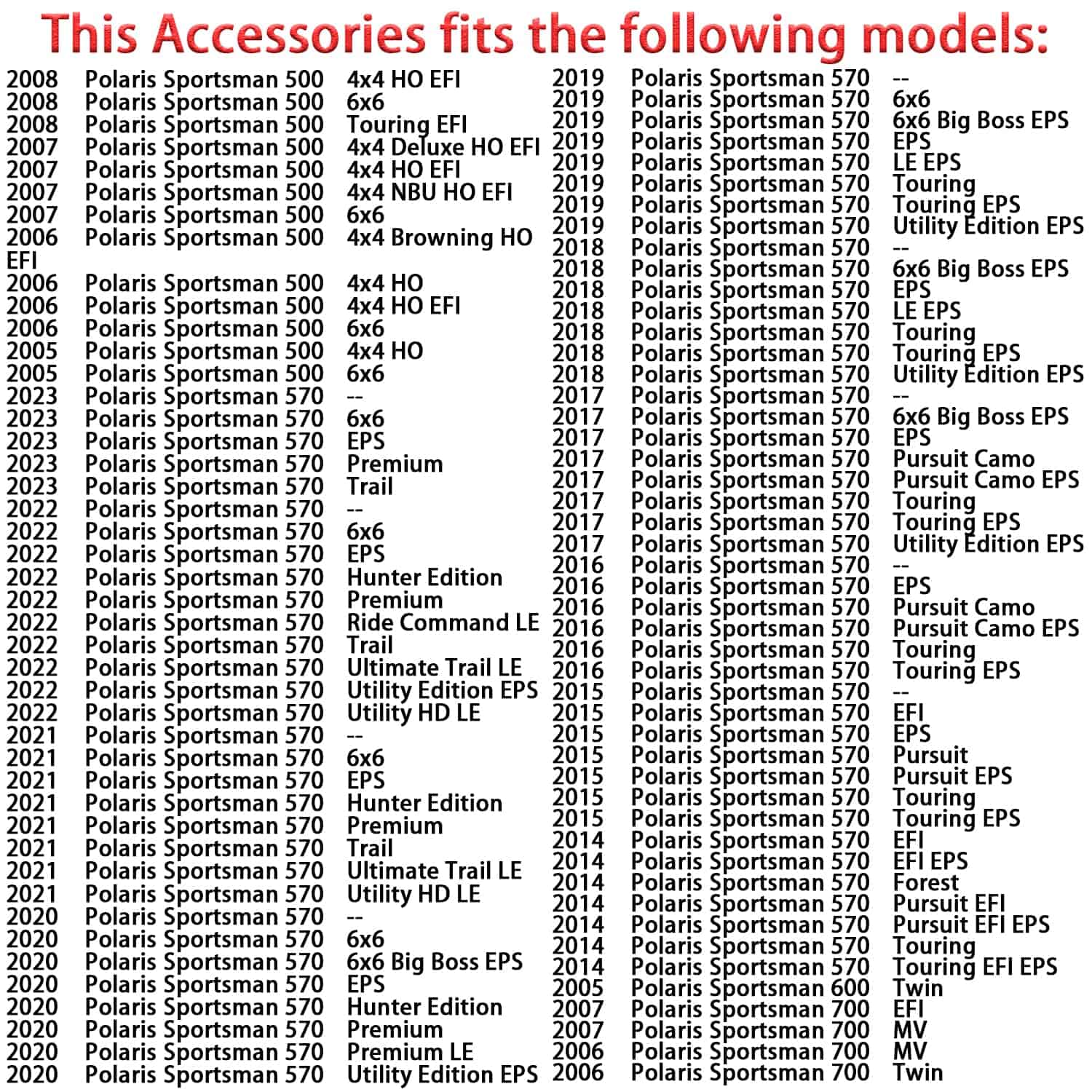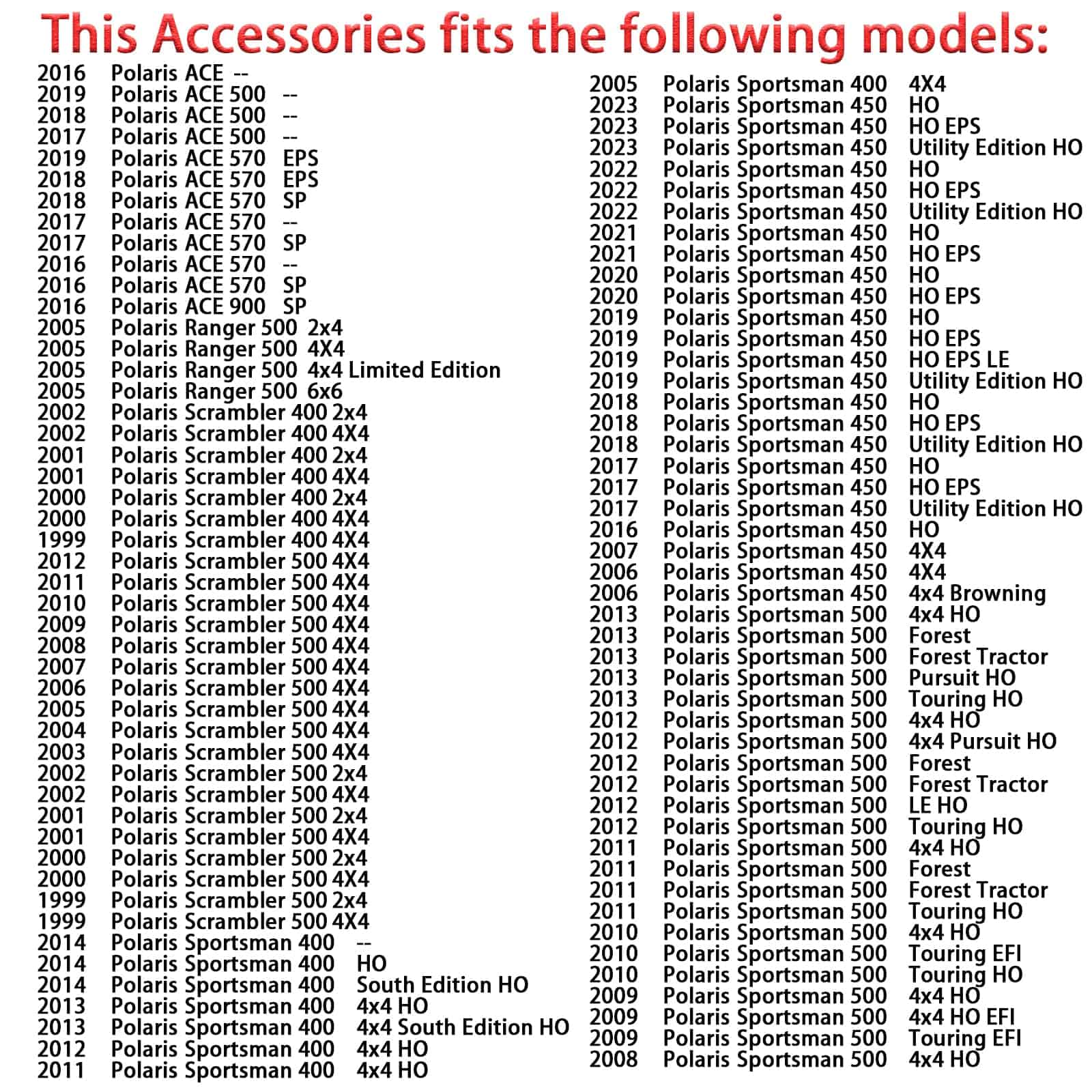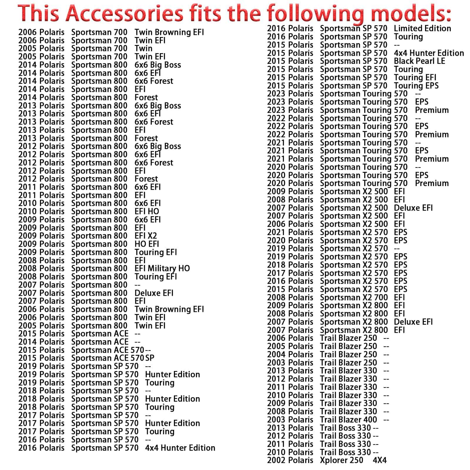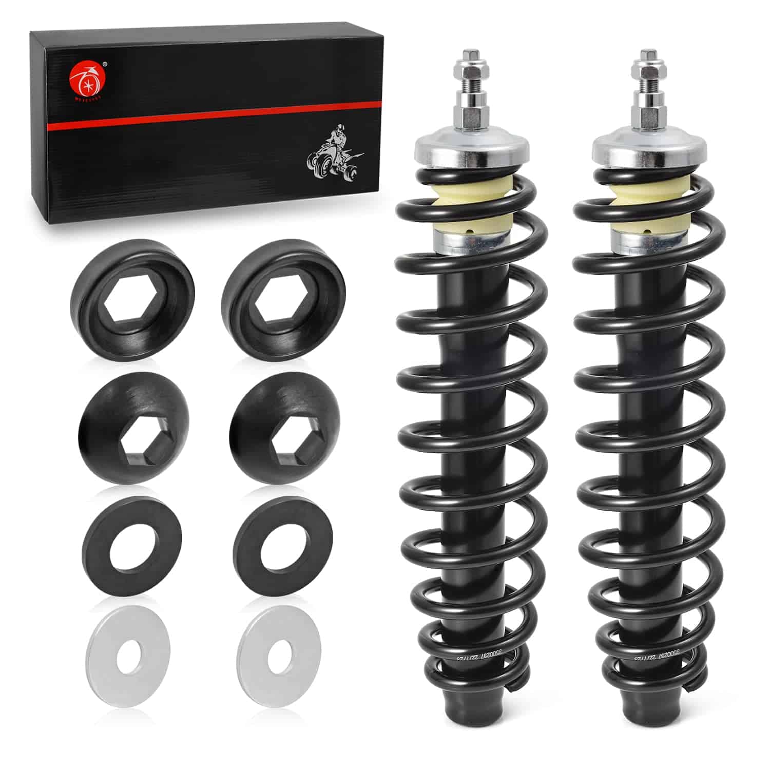 7041762 Front Strut Shocks Absorber For Polaris ACE 325 500 570 900 Scrambler 400 500 Sportsman 400 500 570 600 700 800 Trail Blazer 250 330 400 Trail Boss 330. Conjunto de amortiguador delantero para Polaris ACE 325 500 570 900 Scrambler 400 500 Sportsman 400 500 570 600 700 800 Trail Blazer 250 330 400 Trail Boss 330. Este producto es compatible con múltiples modelos de vehículos todo terreno Polaris. El paquete incluye 2 amortiguadores y 2 kits de bola de pivote. Por favor, asegúrese de verificar la compatibilidad de su modelo antes de realizar la compra y no dude en contactarnos si tiene alguna pregunta. Ofrecemos un servicio de atención al cliente las 24 horas y un servicio de producto de 1 año.