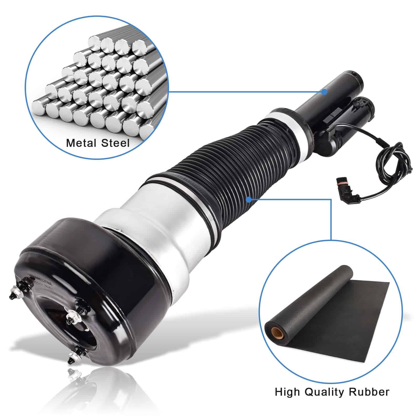 4. Calidad Superior El sistema de suspensión de aire está hecho de acero metal reforzado y excelente goma, más duradero que el amortiguador de aire ordinario, mejor rendimiento de compresión y carga, ofreciéndole una mejor experiencia de conducción después del reemplazo.