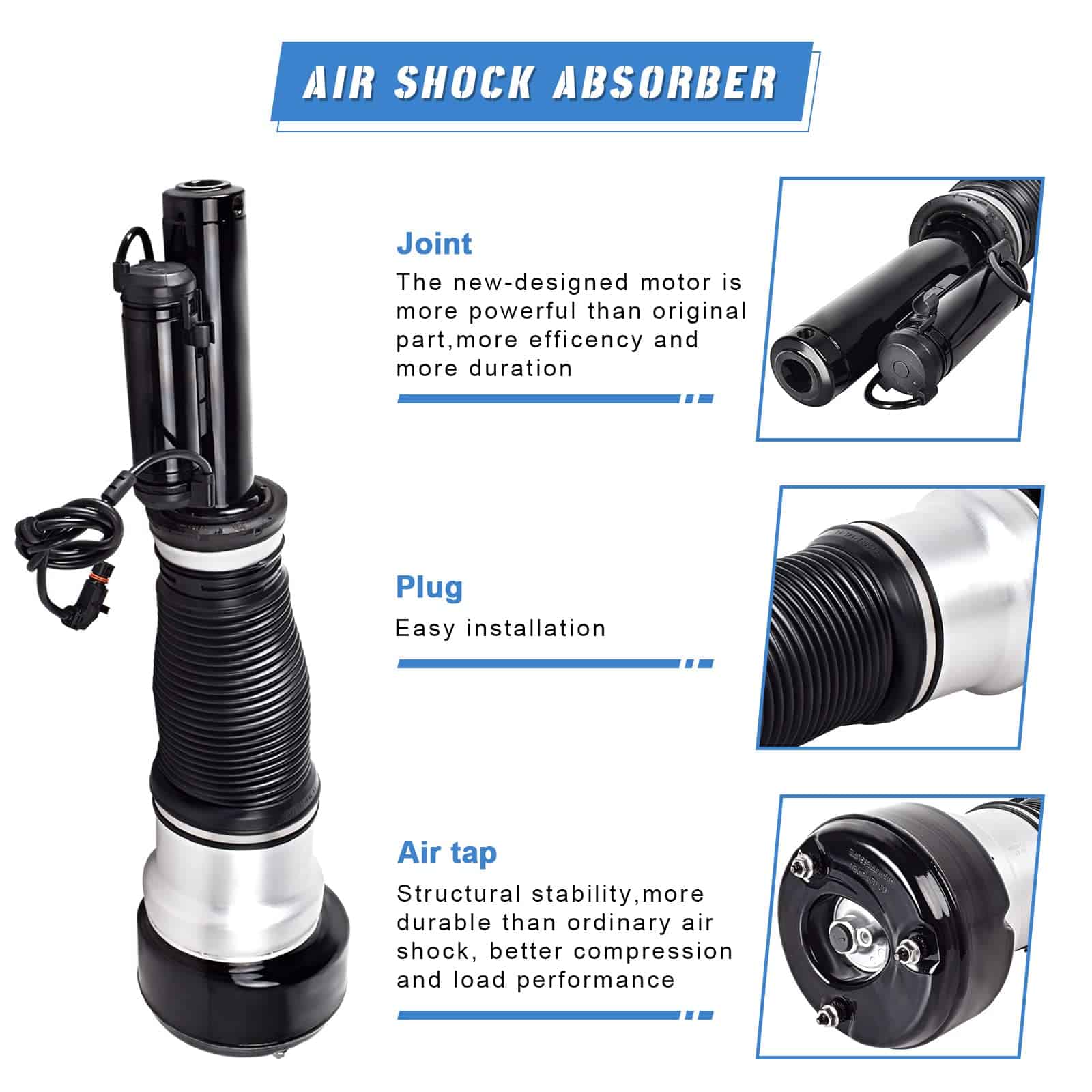 3. Mejora de la Suspensión de Aire Comprometido a mejorar la comodidad de conducción del vehículo, mejorar problemas de frenado y dirección y hacer la conducción más cómoda, económica y segura. Puede reemplazar directamente el paquete de amortiguador original.