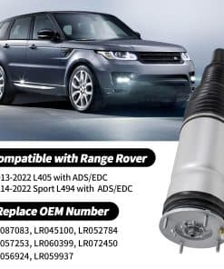 Con números de pieza OEM de LR087083, LR045100, LR052784, LR057253 y más, este amortiguador de suspensión neumática ofrece una calidad confiable respaldada por más de 20 años de experiencia en la industria de accesorios para automóviles. Los ingenieros senior han realizado pruebas rigurosas en vehículos reales para garantizar la durabilidad y confiabilidad de este producto.