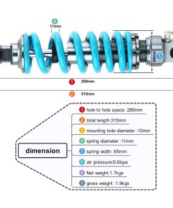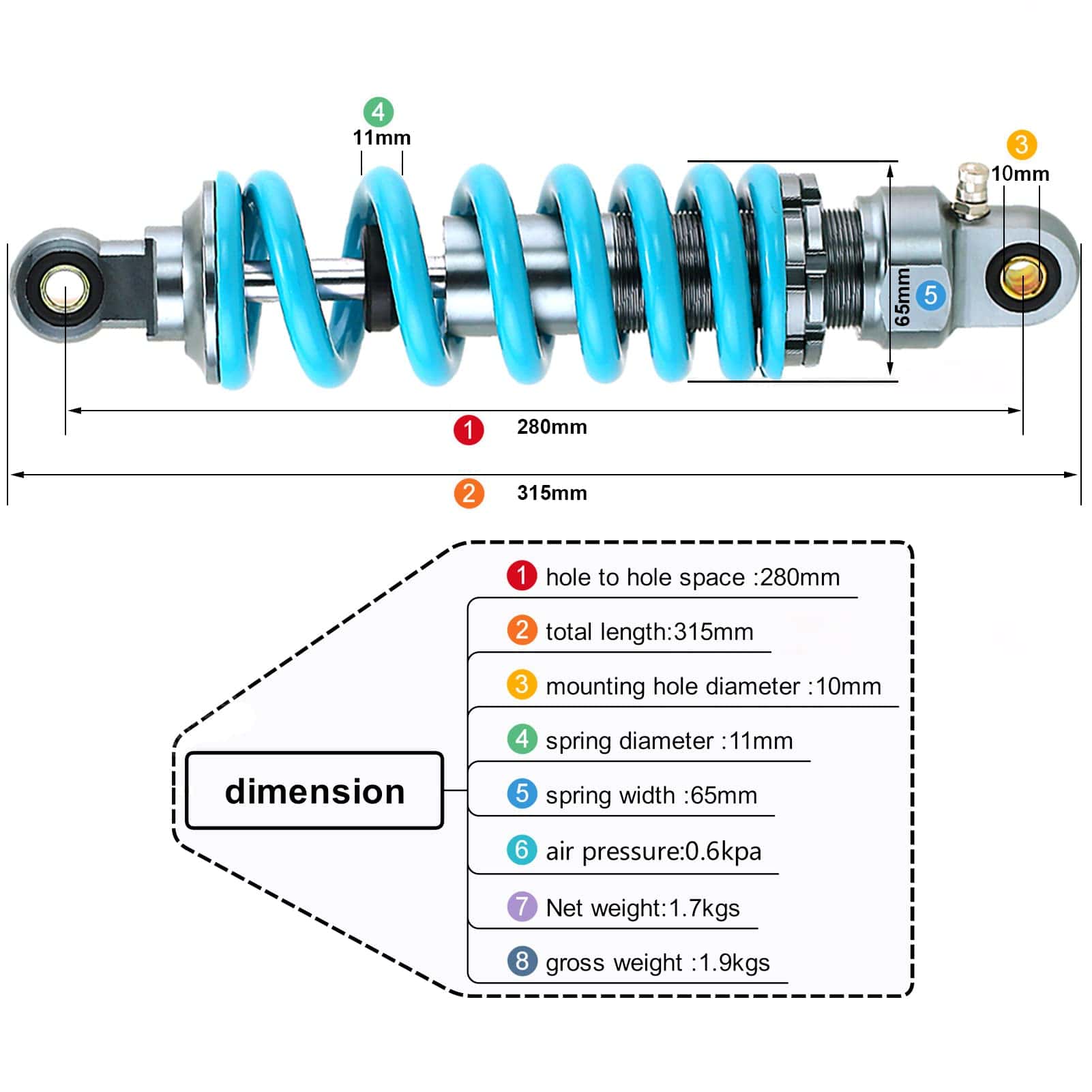Amortiguador de suspensión trasera compatible con motocicleta de tierra / Quad / ATV / Pit con una longitud de 280 mm