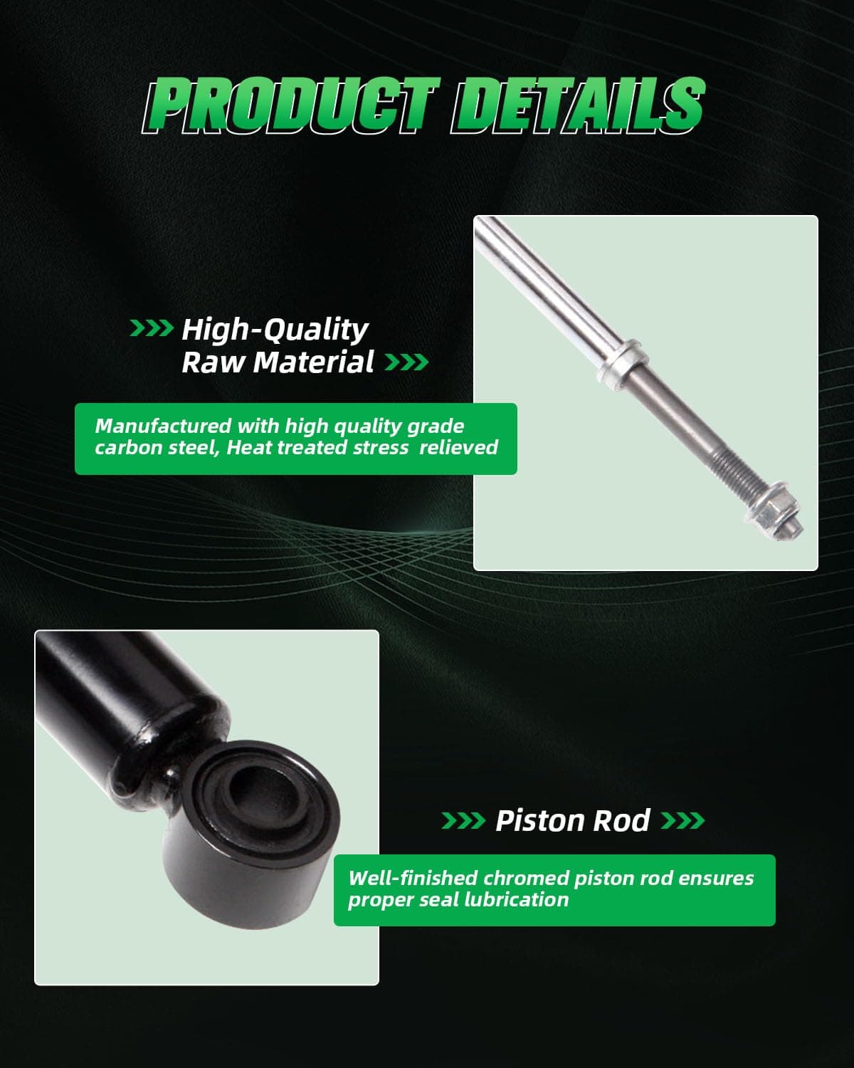 4. RENDIMIENTO: 1. Reduce rebotes, balanceo y desviación, hundimiento al frenar y acelerar, ofreciendo un rendimiento de manejo y control premium; 2. Prevención eficaz de fugas de aceite y reducción de ruidos anormales, haciendo que la experiencia de conducción sea más cómoda; 3. El diseño disipa el calor rápidamente, aumentando la durabilidad y la vida útil del producto.