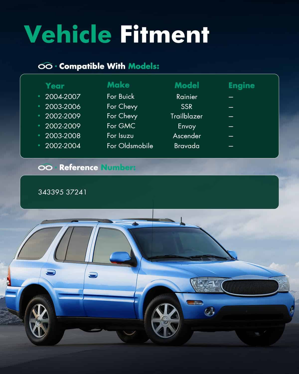 Amortiguador SCITOO para la parte trasera, se ajusta a 2002-2009 Chevrolet Trailblazer / 2002-2009 GMC Envoy / 2003-2008 Isuzu Ascender / 2004-2007 Buick Rainier / 2003-2006 Chevrolet SSR 343395 37241 (paquete de 2). Este amortiguador mejorado está diseñado específicamente para los vehículos mencionados. Alta precisión en su fabricación con equipos de balanceo de alta tecnología para garantizar un posicionamiento preciso de los agujeros de montaje, lo que reduce cualquier desviación y facilita la instalación en un solo paso. Cumple con rigurosos estándares de calidad de fabricación Seiko para garantizar un amortiguador duradero. La soldadura de alta resistencia asegura que la parte estampada esté firmemente conectada al barril, proporcionando una salida más estable y evitando la fuga de aceite y ruidos anormales, lo que mejora la experiencia de conducción. Este par de amortiguadores traseros está diseñado para trabajar juntos y facilitar la instalación en su vehículo, brindando un rendimiento confiable y una conducción cómoda.