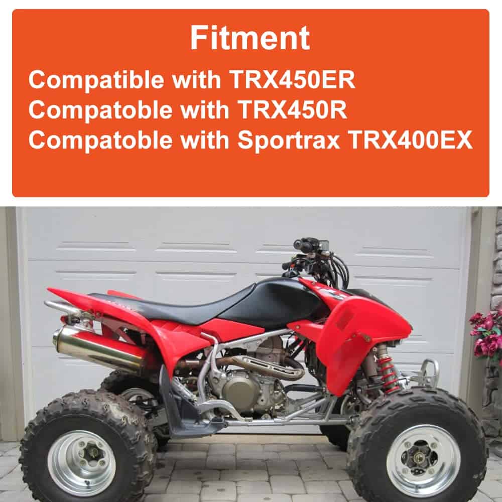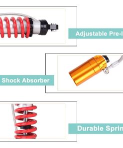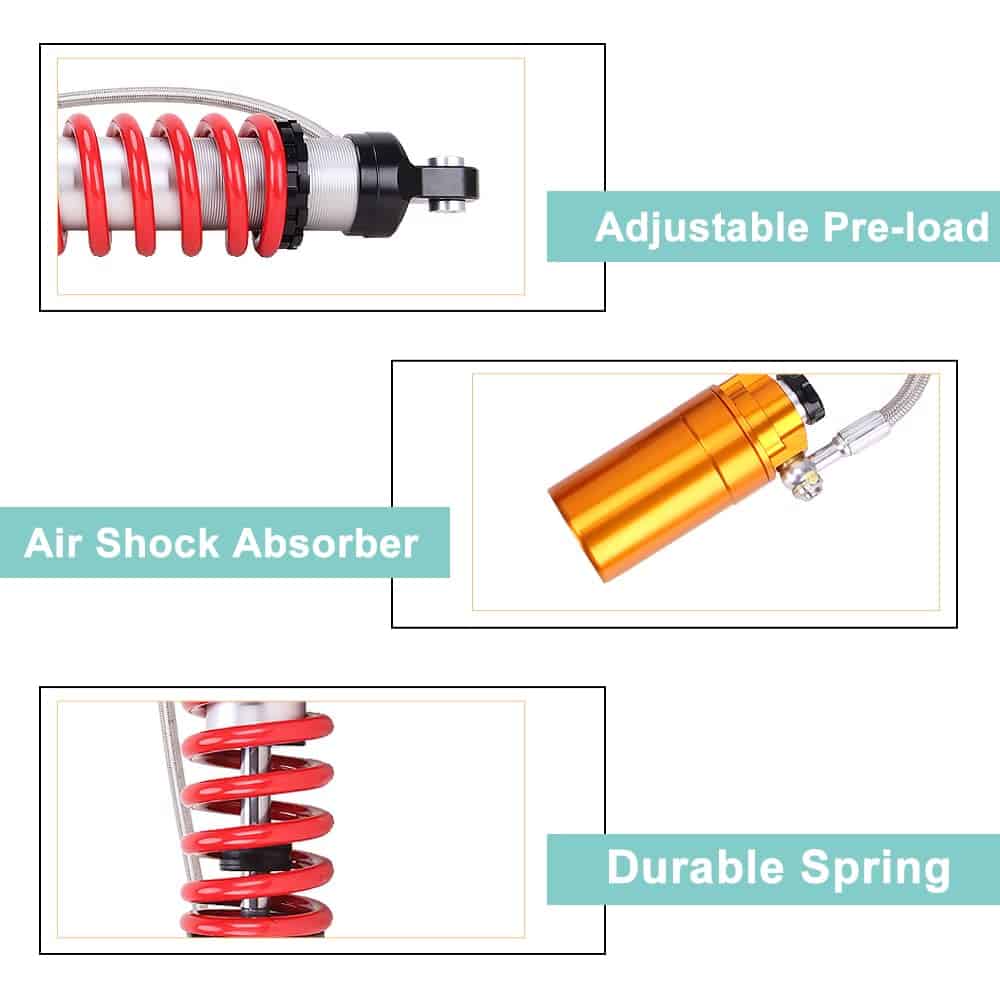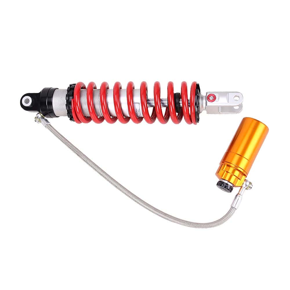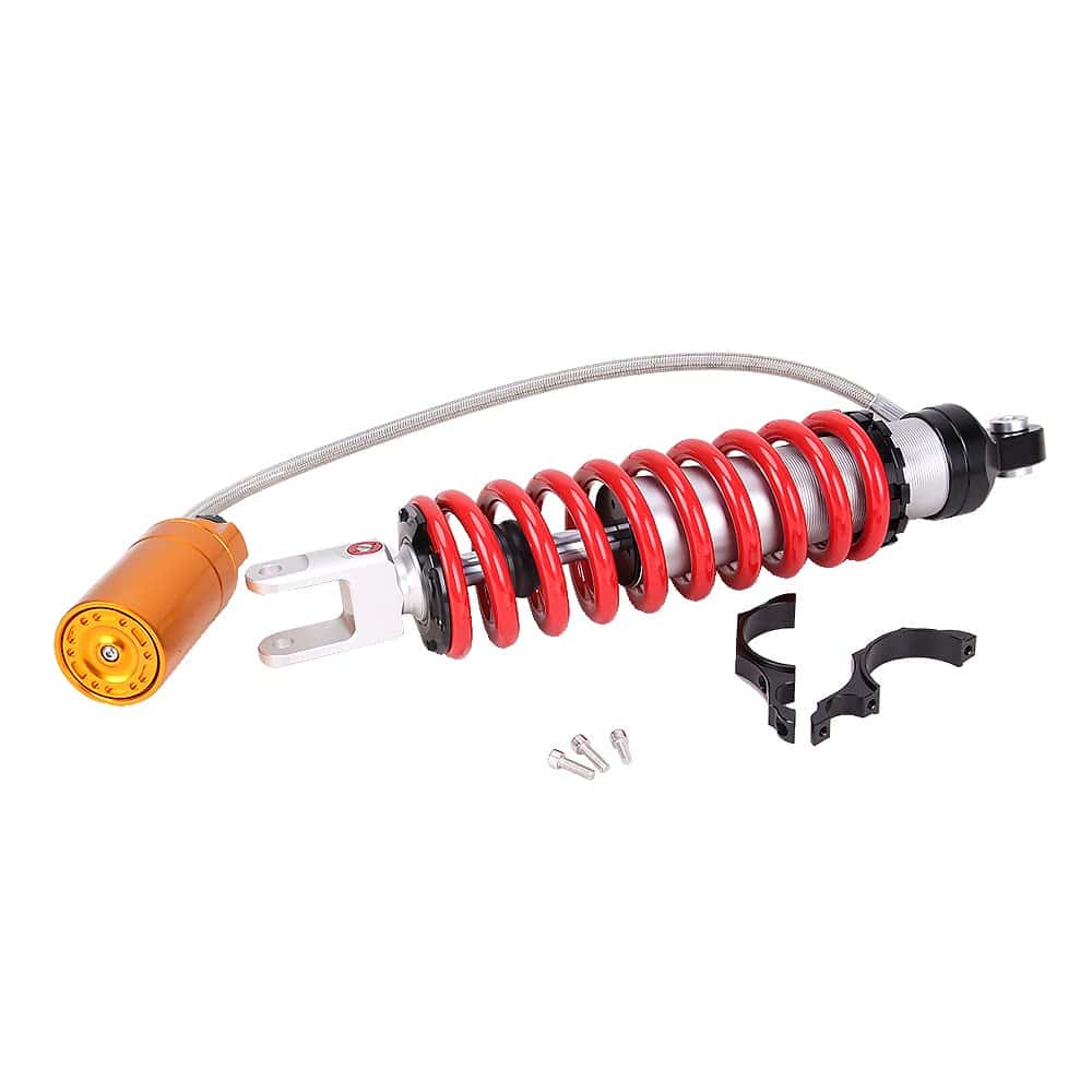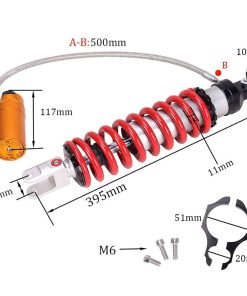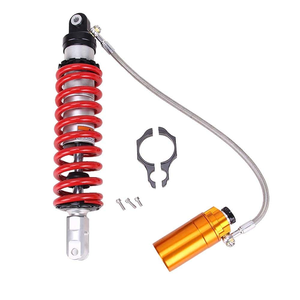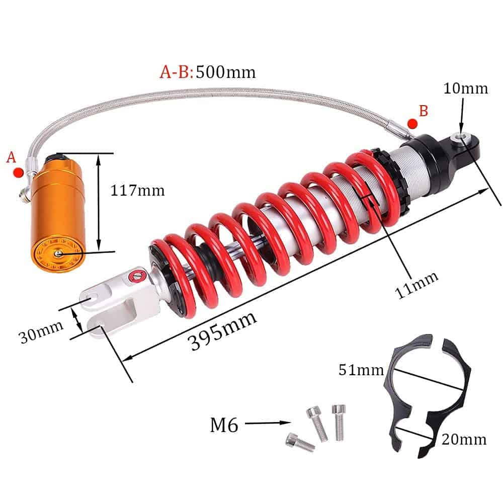 Amortiguador trasero de aire ajustable OUMURS de 395mm compatible con Honda Sportrax TRX400EX Todos los Años, TRX450ER 2006-2014, TRX450R 2006-2012. Este amortiguador ofrece una ajustabilidad excepcional para adaptarse a las necesidades de conducción específicas de cada usuario. Con una longitud de 395mm de ojo a ojo, es ideal para Honda Sportrax TRX400EX 1999-2008; TRX450ER 2006-2014; TRX450R 2006-2012. El preload ajustable permite personalizar la respuesta del amortiguador según el peso del ATV. La compresión y el rebote también son ajustables, lo que le brinda la libertad de elegir entre una conducción suave o deportiva. La instalación es sencilla y el diámetro del resorte de 11mm garantiza una resistencia adecuada para cargas de 100kg-300kg. Disfrute de una experiencia de conducción personalizada con el amortiguador trasero de aire ajustable OUMURS.