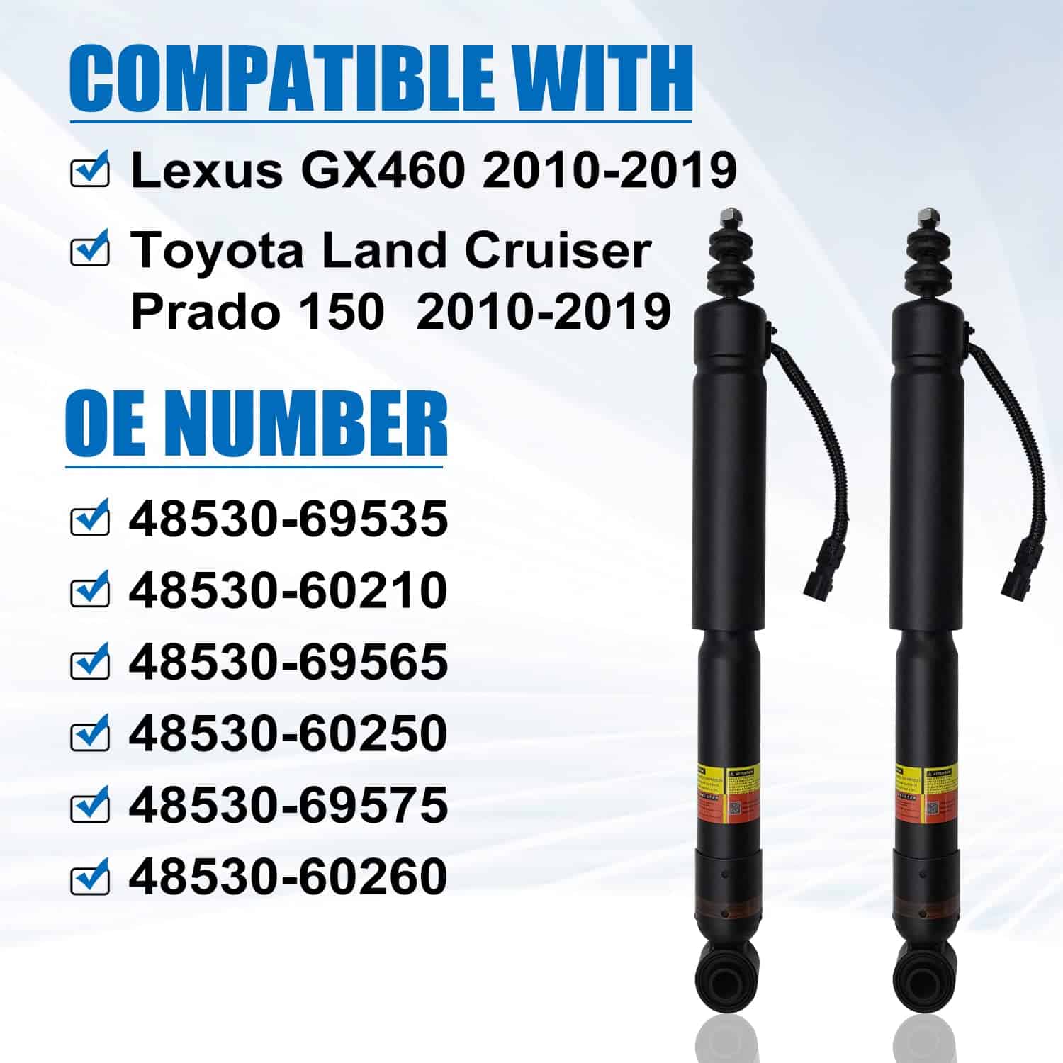 2. Vehículos Compatibles Este amortiguador trasero magnético de control de suspensión de viaje compatible con Lexus GX460, Toyota Land Cruiser Prado 150 2010-2017.
