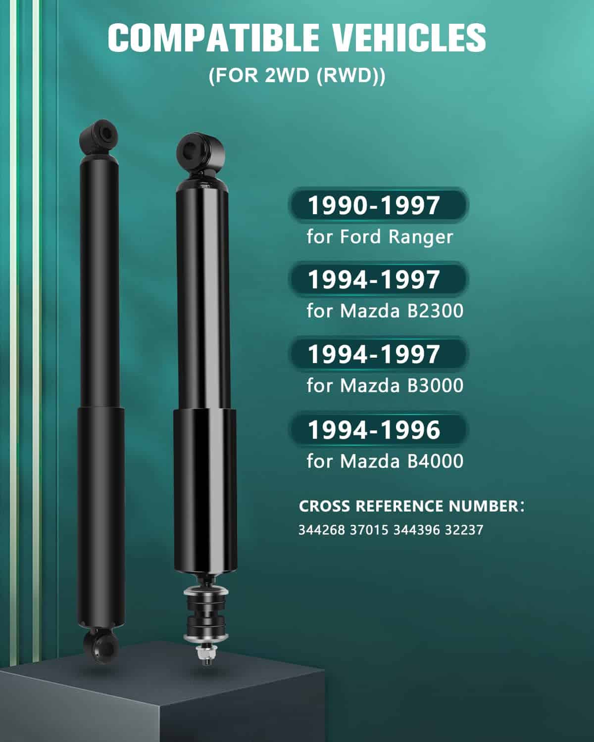 Compatibilidad con vehículos: 1990-1992 Ford Ranger Custom Extended Cab Pickup 2 puertas, 1990-1992 Ford Ranger Custom Standard Cab Pickup 2 puertas, 1990-1997 Ford Ranger STX Extended Cab Pickup 2 puertas, 1990-1997 Ford Ranger STX Standard Cab Pickup 2 puertas, 1994-1996 Mazda B2300 Base Extended Cab Pickup 2 puertas, 1994-1997 Mazda B2300 Base Standard Cab Pickup 2 puertas, 1995-1997 Mazda B2300 SE Extended Cab Pickup 2 puertas, 1994-1996 Mazda B3000 Base Extended Cab Pickup 2 puertas, 1994-1997 Mazda B3000 Base Standard Cab Pickup 2 puertas, 1994-1996 Mazda B3000 SE Extended Cab Pickup 2 puertas, 1994-1995 Mazda B3000 SE Standard Cab Pickup 2 puertas, 1994-1996 Mazda B4000 LE Extended Cab Pickup 2 puertas, 1994-1996 Mazda B4000 SE Extended Cab Pickup 2 puertas.