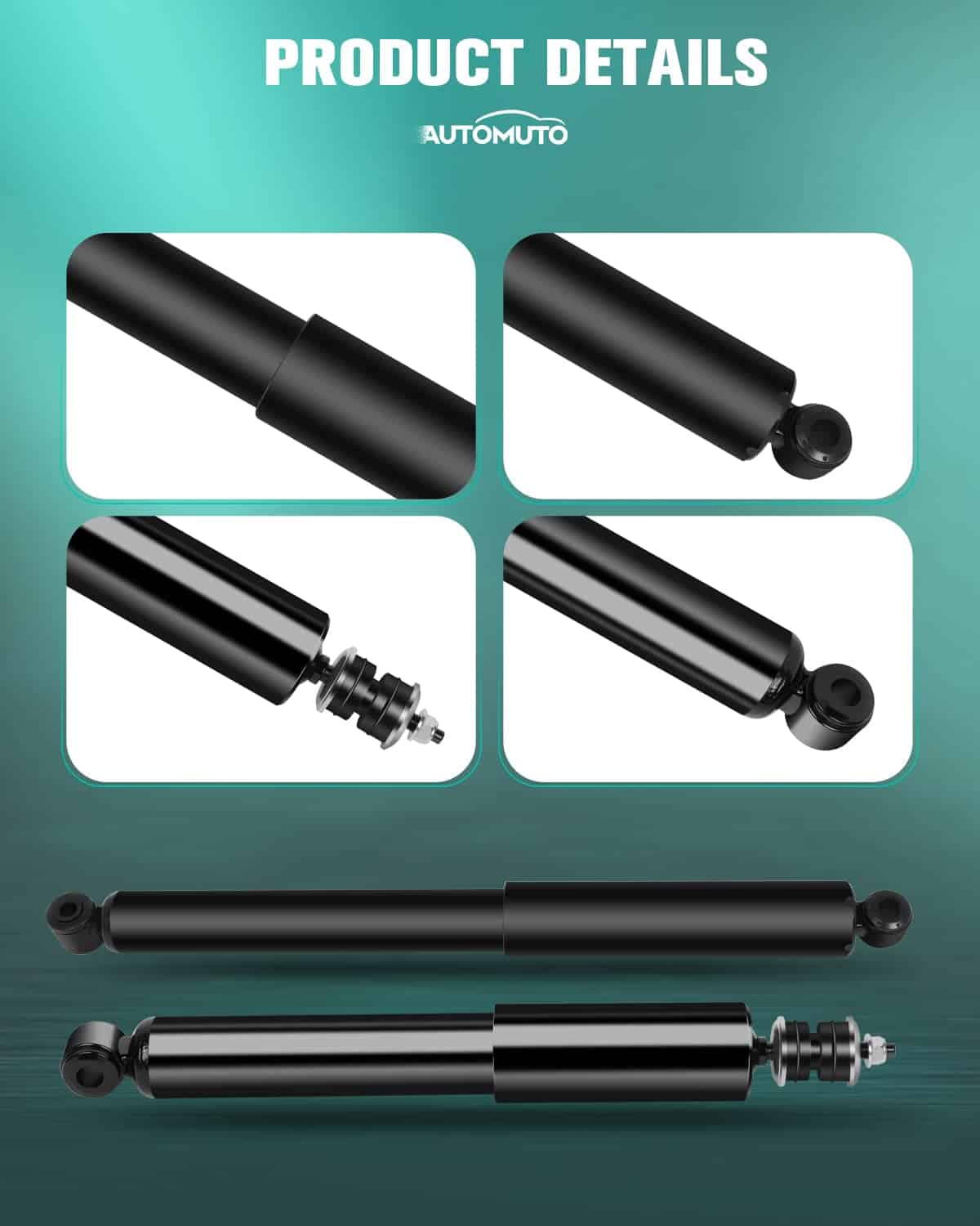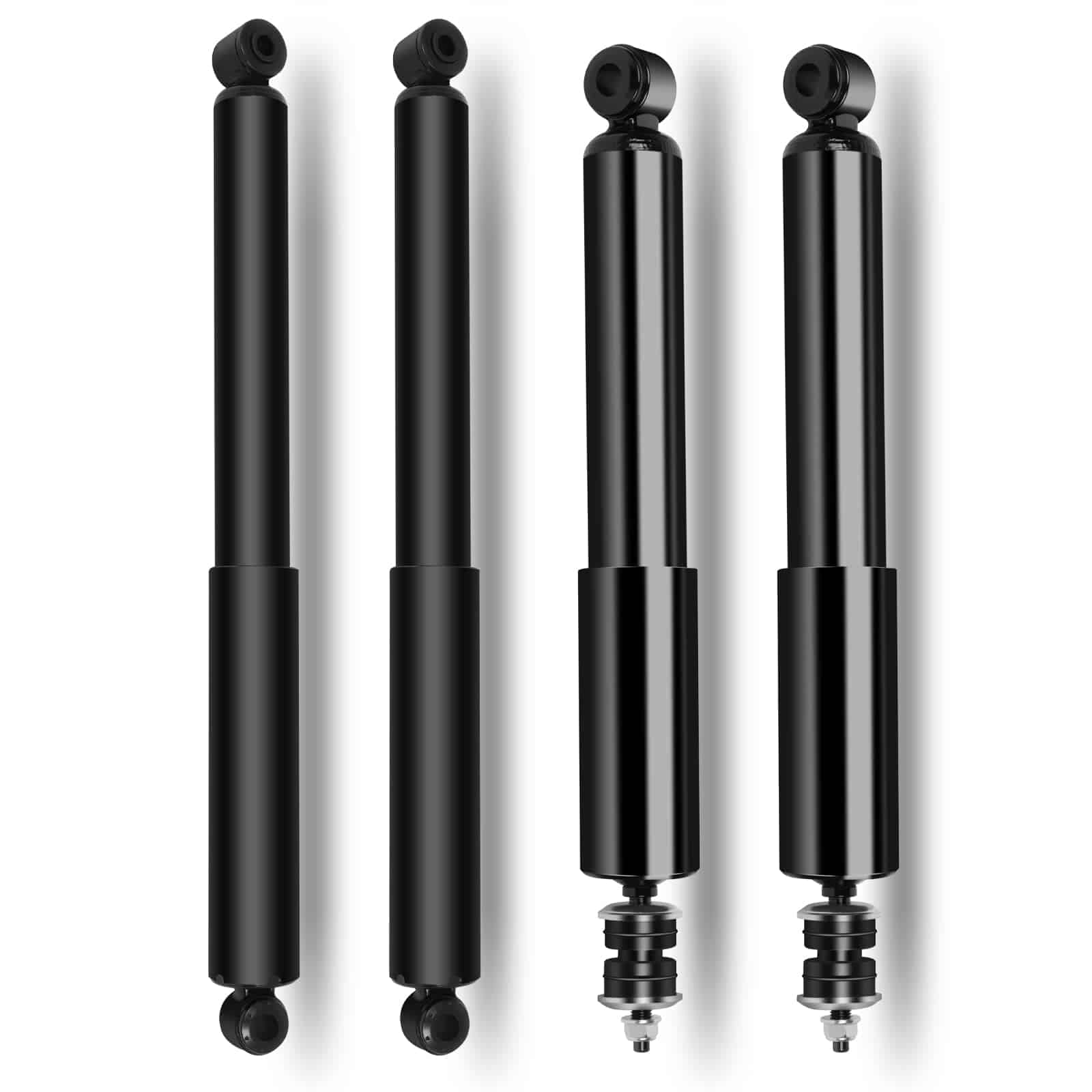 Especificaciones: Tipo: Amortiguador, Piezas incluidas: 4 Unidades Amortiguador Delantero y Trasero, Referencia Cruzada OEM: 344268 37015 344396 32237, Tipo de Ajuste: reemplazo directo/cargado de gas. Llegó el momento de reemplazar sus amortiguadores si se ve afectado por lo siguiente: 1) El automóvil emite un sonido anormal. 2) El automóvil se hunde cuando la carretera es mala o la carga es pesada. 3) Fuga de aceite. 4) El desgaste de los neumáticos es frecuente e irregular. 5) Es difícil controlar el automóvil. 6) La poca estabilidad hace que se sienta muy incómodo.