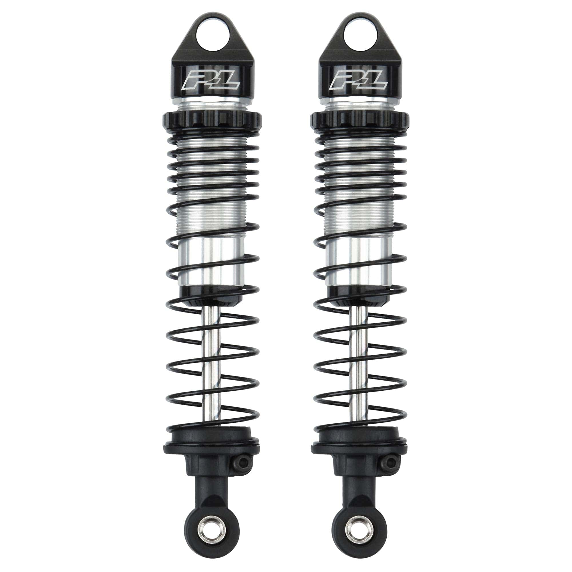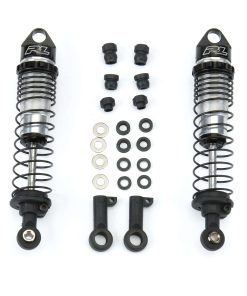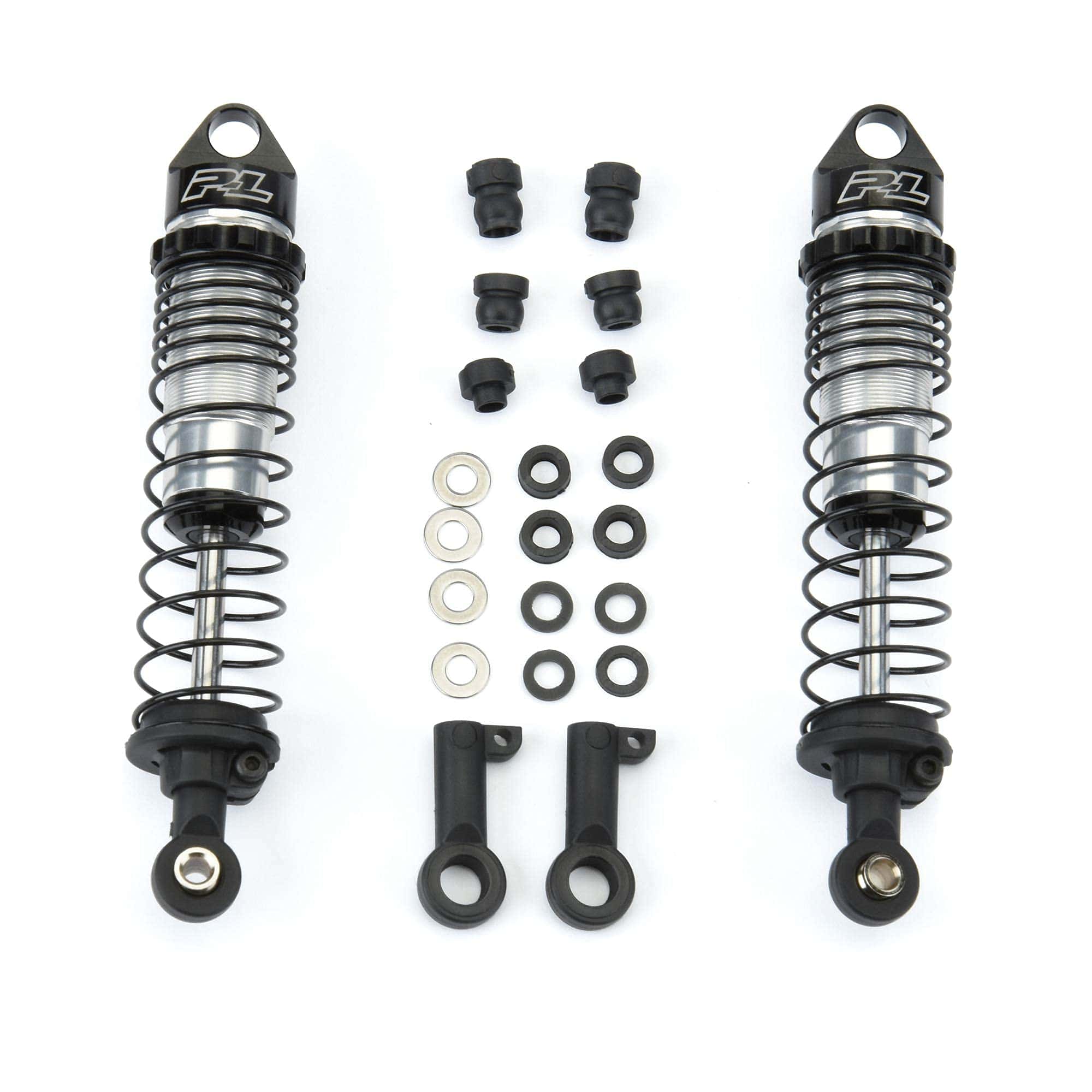 Características Clave: Los mejores amortiguadores de escala jamás fabricados por Pro-Line. Big Bore Holds More Oil for Better Performance. Pre-Assembled, Just Fill and Go. Single Low Friction X-Ring Seal Prevents Leaks. Diseño de muelle simple de doble tasa. Eje de amortiguador cromado duro. Captured Lower Spring Perch. Kit de reconstrucción y surtido de muelles se venden por separado. Descripción: Diseñados para adaptarse a muchos vehículos populares de escala 1:10 crawler. El diámetro grande permite que los Big Bore Shocks funcionen como verdaderos amortiguadores de rendimiento debido al mayor volumen de aceite en el cuerpo del amortiguador. Tapas de amortiguador de aluminio mecanizadas por CNC, collares, cuerpos, tapas inferiores y ejes de amortiguador de acero cromado duro. Los sellos X-Ring sellan el eje principal para una acción suave y de baja fricción y para evitar fugas. Diseño de muelle de doble tasa totalmente nuevo para una apariencia y rendimiento de escala. Los resortes de doble tasa más suaves y más firmes opcionales están disponibles en el Big Bore Scaler Shock Spring Assortment (6343-02). La base del muelle inferior está capturada, por lo que siempre sabrás que se mantendrá en su lugar. 90 mm a la longitud total extendida y colapsa hasta aproximadamente 64 mm (cuando se quita el tope de goma). ¡Incluye extremos de amortiguador adicionales de 5 mm más largos para aumentar la longitud del amortiguador! Principalmente preensamblado (solo agregar aceite). Requiere de Aceite de Amortiguador de Silicona. Contenido de la caja: Amortiguadores Big Bore Scaler (90mm-95mm) (2pcs) +5mm Shock Ends (2pcs) Bolas de pivote superior estándar (2pcs) Bolas de pivote superior capturadas (4pcs) Arandelas de montaje de metal (4 unidades) Limitadores internos de amortiguadores de plástico de 1 mm y 2 mm opcionales (8 pcs).