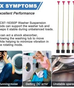 DC97-16350P para modelos de lavadoras Samsung. Si no puedes encontrar el modelo de tu lavadora, puedes enviarnos un correo electrónico y te ayudaremos a confirmarlo. Función del producto DC97-16350P WA22R7450AW Suspensiones / Amortiguadores Para Lavadora para Samsung. Calidad OEM a mitad de precio, desde el moldeado, estampado hasta el ensamblaje, inspección de cada proceso con estrictos requisitos de calidad y revisión a mano. Diseño bien elaborado, procesamiento excelente. Piezas no OEM pero cumplen con los requisitos de fabricación OEM. Ahorro de tiempo y dinero. Garantía de 10 años. Si la varilla de suspensión WA22R7450AW para Samsung tiene algún problema de calidad o el artículo no encaja, puedes enviarnos un correo electrónico, te daremos un reemplazo o un reembolso completo en 24 horas.
