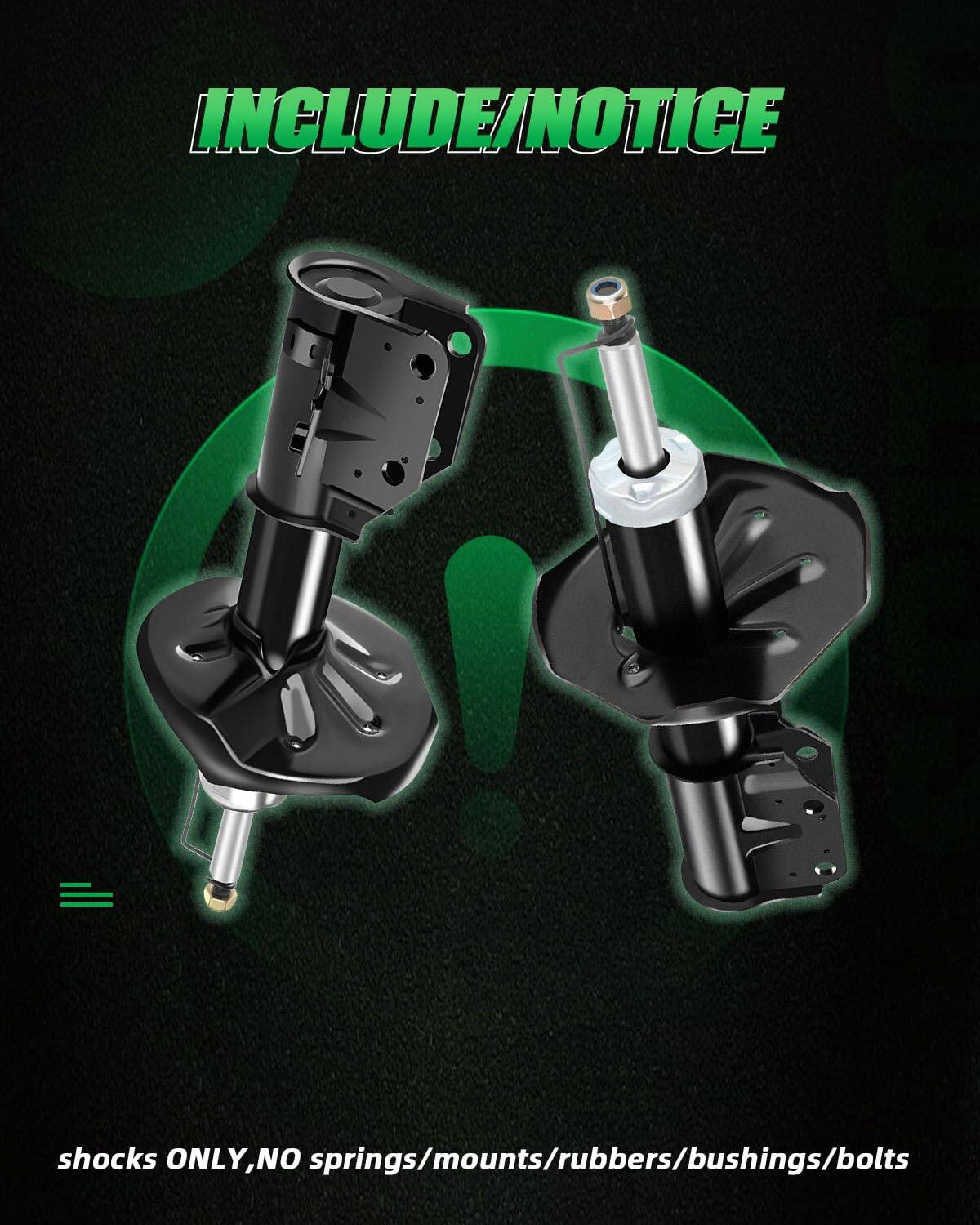 Parte Número. VEHÍCULOS COMPATIBLES: Conjunto de Amortiguadores Delanteros para el Lado del Conductor y del Pasajero: 333350 / 71424 / 333351 / 71425 con 2000 2001 2002 2003 para Mazda Protege, 2002 2003 para Mazda Protege5. Paquete incluye: Un Par de Amortiguadores Delanteros Izquierdo + Derecho para Mazda. ¡CONSEJOS! Solo amortiguadores, no incluye resortes, arandelas, bujes y soportes. Eje de pistón cromado duro, procesos de superficie cromada microfisuras y pulido vertical de ultra precisión. CARACTERÍSTICAS DE LOS AMORTIGUADORES DE BARRA SCITOO- 1. Reducen el rebote, balanceo y deslizamiento del vehículo, zambullida en frenos y aceleración. 2. Los agujeros de la hebilla son consistentes con el automóvil in situ, sin cambios, instalación fácil y rápida. 3. Diseño de tubo único disipa el calor rápidamente, aumentando la durabilidad y la vida útil del producto. 4. Control y estabilidad mejorados, manejo preciso, rendimiento definitivo e increíble comodidad. 5. Conducción más tranquila y suave que los amortiguadores desgastados o dañados. NOTA DE COMPRA: Por favor, Verifique el Número de Identificación del Vehículo o el año/marca/modelo/versión/motor de su automóvil