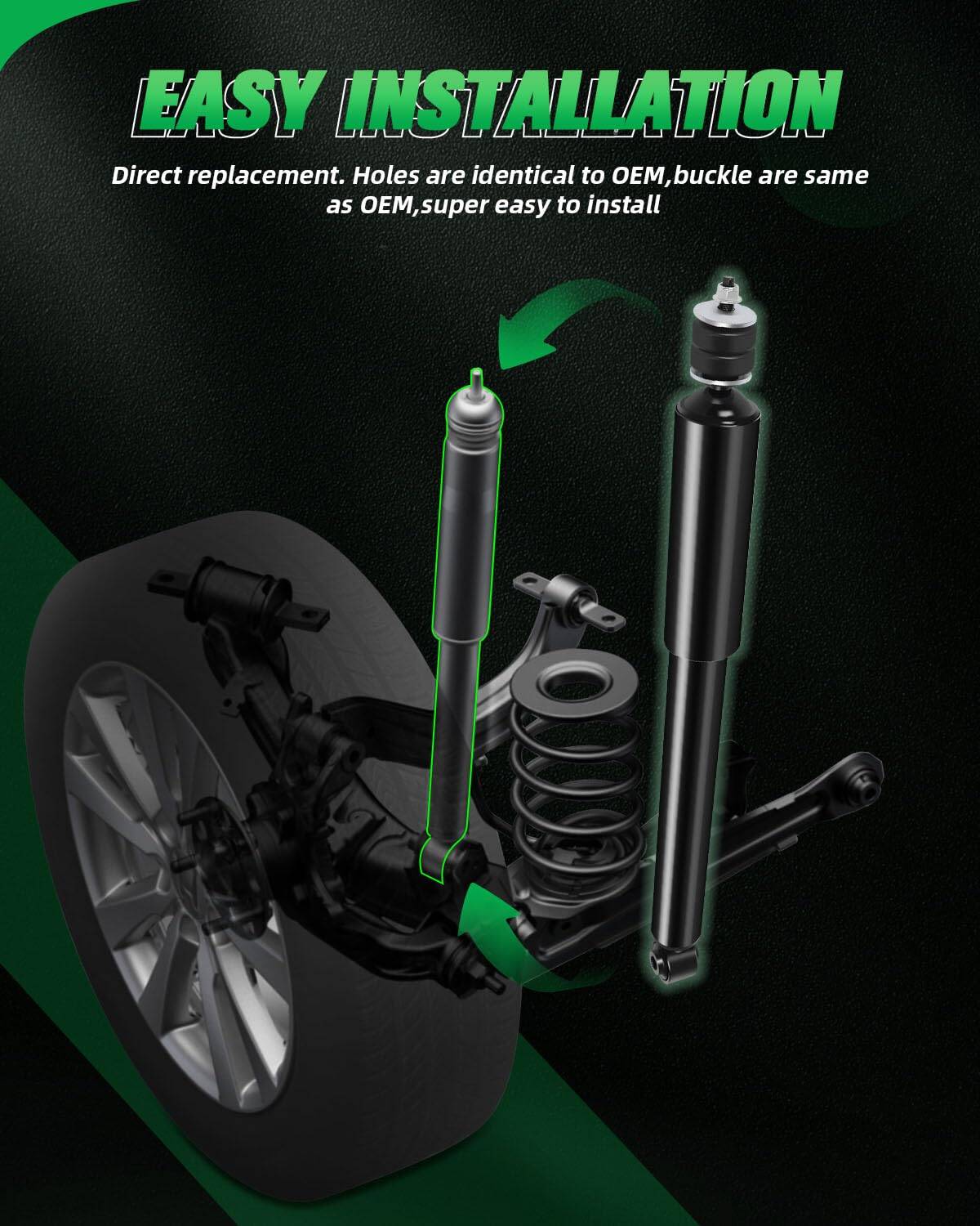 Amortiguadores Traseros de Gas SCITOO, compatible con 2012 2013 2014 2015 para Honda Civic. La alta precisión del equipo de equilibrado garantiza una posición exacta de los agujeros de montaje, reduciendo la desviación y asegurando una instalación sencilla. La fabricación de Seiko garantiza la calidad y extiende la vida útil del amortiguador. La soldadura de alta resistencia asegura una conexión sólida entre la parte de estampado y el barril, evitando fugas de aceite y ruidos anormales. Disfruta de una experiencia de conducción más cómoda con estos amortiguadores traseros de alta calidad de SCITOO.