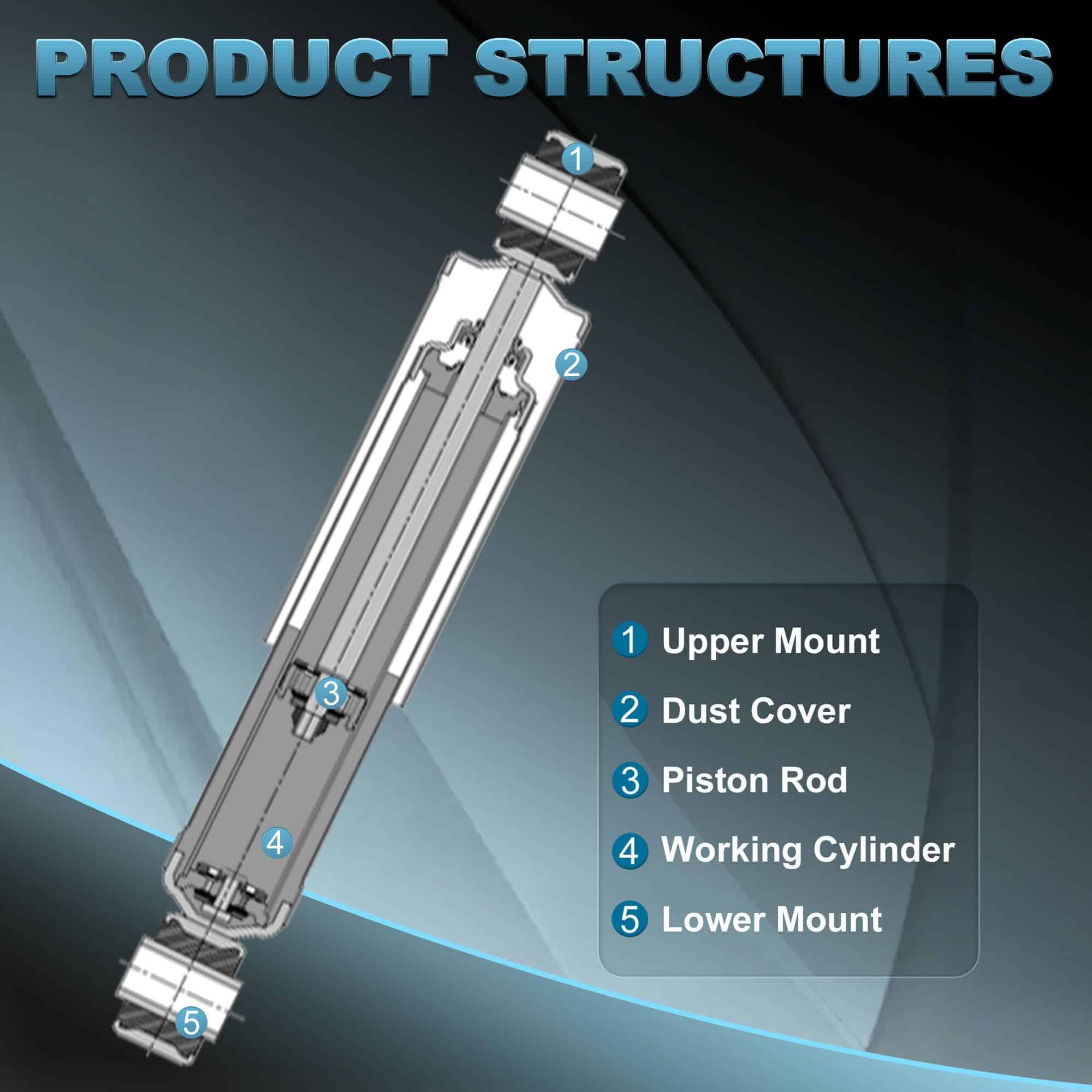 3. La función del montaje del amortiguador cuenta con varillas de pistón cromadas con soportes y montajes OEM para evitar fugas. Sus casquillos sin costuras garantizan un desplazamiento suave, el resorte de acero en espiral proporciona una absorción de impactos de alta eficiencia, reducción de ruido, mejorar la estabilidad operativa del vehículo, reducir el desgaste del vehículo, una experiencia de conducción más cómoda y segura.