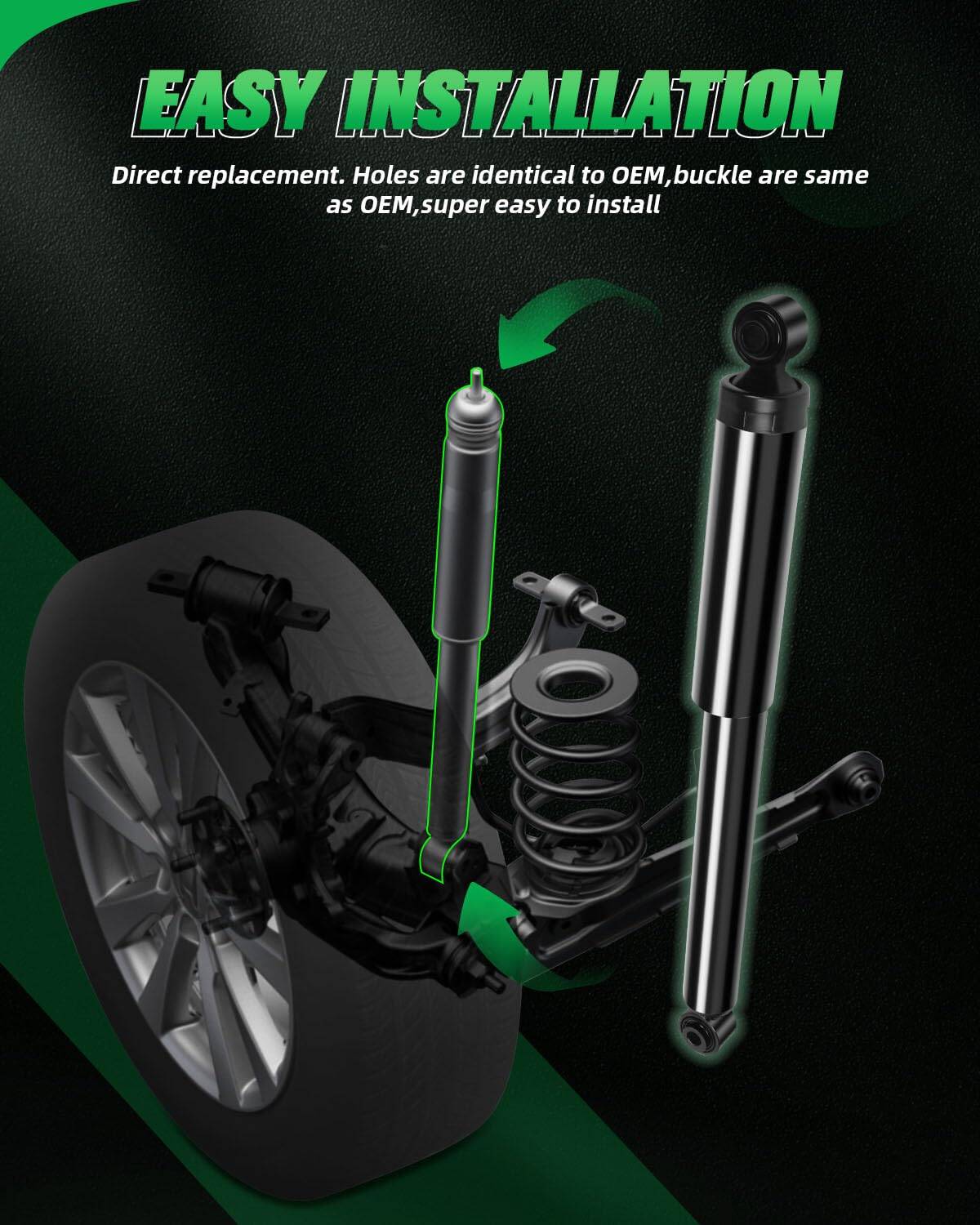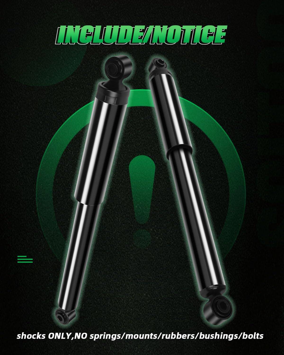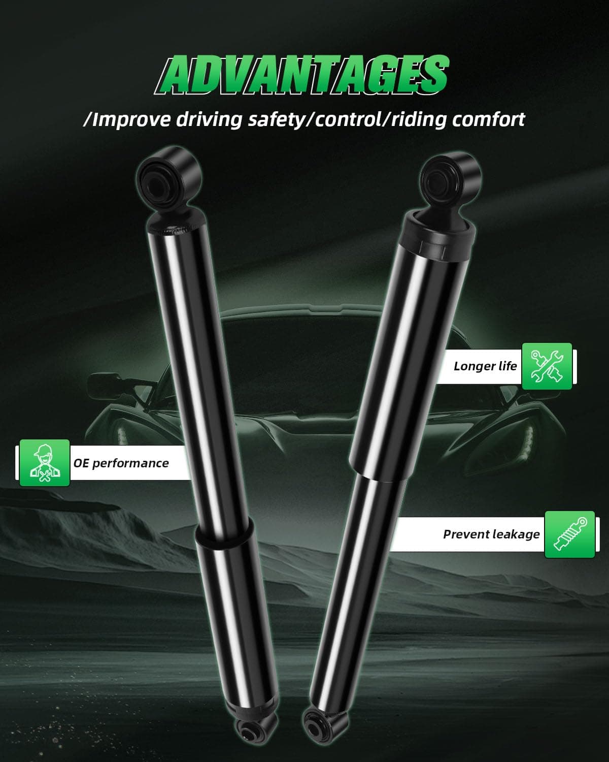 Características1. Fácil de Instalar2. Reemplazo Directo/Exacto con Calidad Garantizada3. Mejora del Sellado para una Vida más Larga Información de Compatibilidad: 2007-2015 para Chevrolet Silverado 1500 Base 2014-2015 para Chevrolet Silverado 1500 High Country 2009-2013 para Chevrolet Silverado 1500 Hybrid 2008-2015 para Chevrolet Silverado 1500 LS 2007-2015 para Chevrolet Silverado 1500 LT 2007-2015 para Chevrolet Silverado 1500 LTZ 2015 para Chevrolet Silverado 1500 SSV 2007-2015 para Chevrolet Silverado 1500 WT 2010-2013 para Chevrolet Silverado 1500 XFE 2014-2015 para GMC Sierra 1500 Base 2007-2015 para GMC Sierra 1500 Denali 2009-2013 para GMC Sierra 1500 Hybrid 2008-2013 para GMC Sierra 1500 SL 2007-2015 para GMC Sierra 1500 SLE 2007-2015 para GMC Sierra 1500 SLT 2007-2013 para GMC Sierra 1500 WT 2010-2013 para GMC Sierra 1500 XFE Especificaciones: Posición en el Vehículo: Trasero, Izquierdo, Derecho Número de Reemplazo: 345074 911533 Garantía: 1 año Paquete Incluye: 2pcs Amortiguadores de Shocks Consejos: 1. Para asegurar que el amortiguador no se dañe, a veces se empaquetará y transportará en DOS paquetes 2. Solo amortiguadores de shocks, no incluye resortes ni soportes
