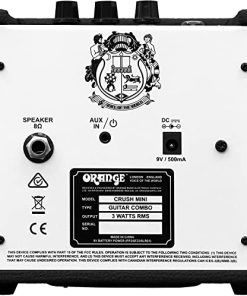 El Orange Crush Mini ha sido rediseñado para darte el tono Orange en un amplificador pequeño y ligero. Ya sea calentando backstage, practicando en la carretera o en tu habitación, el Crush Mini siempre está ahí para proporcionar tono Orange. El panel de control rediseñado te da control total del tono con gain, shape y volumen. Reduciendo el gain y subiendo el volumen obtendrás un tono crunch, mientras que aumentando el gain tendrás tonos de alta ganancia penetrantes. El control de forma, como el Micro Dark, corta o aumenta los medios, dando tonos medios grasos hasta tonos ahuecados. Una nueva característica del Crush Mini es la salida del altavoz de 8 Ohmios, utilizando la etapa de preamplificación del amplificador puedes conectarlo a un gabinete de altavoces, ampliando las capacidades de tu amplificador. El sintonizador incorporado regresa asegurando que siempre estés afinado en la carretera, la salida para auriculares también desconecta el altavoz para práctica silenciosa, y la entrada AUX IN significa que tocar junto a tus canciones favoritas es pan comido.