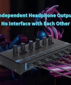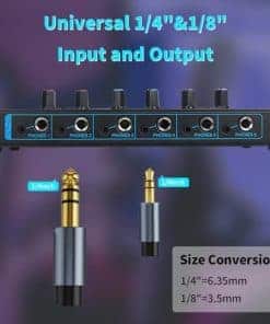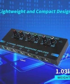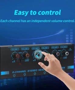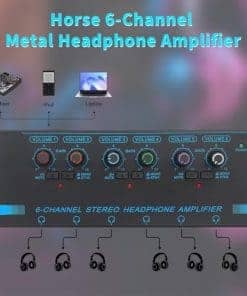 El Amplificador de auriculares de cabeza de caballo es perfecto para el monitoreo y enrutamiento de audio. Cuenta con 6 canales que permiten dividir el sonido de diferentes fuentes en un solo lugar de escucha, con controles de volumen independientes para cada canal. Con la capacidad de cambiar fácilmente entre modo estéreo y mono, este amplificador ofrece la más alta calidad de sonido sin distorsión. Su diseño compacto y resistente lo hace ideal para su uso en estudios de música o cualquier entorno donde se requiera una fácil división de señales de nivel de línea.