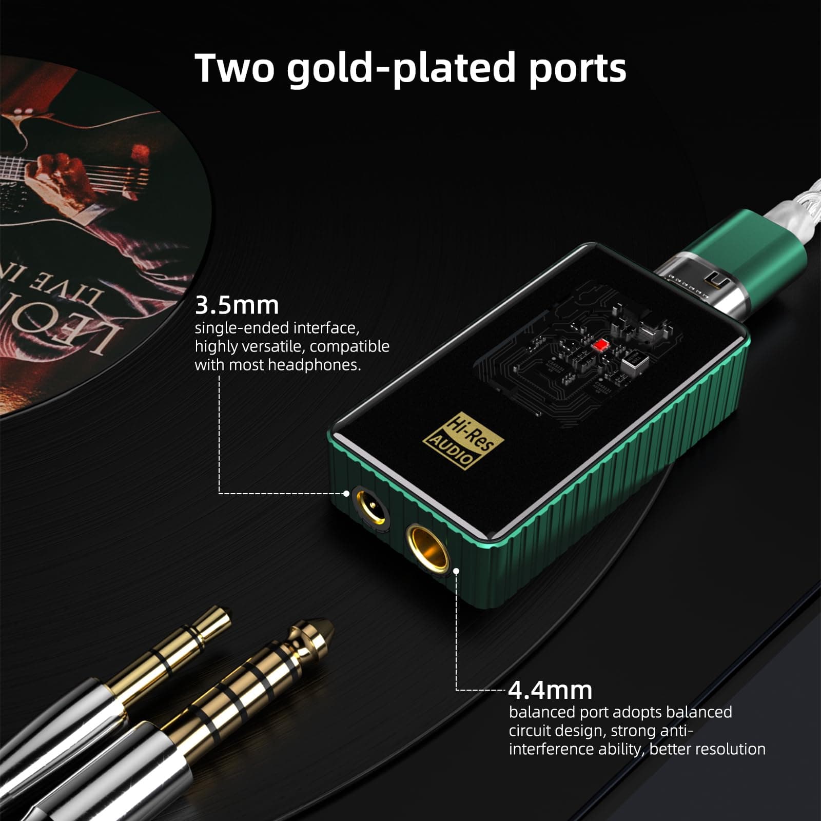 3. Salidas duales equipadas con cuatro motores CMA, soporta salida de 3.5mm single-ended y 4.4mm completamente balanceada. También cuenta con ajuste manual de ganancia, permitiendo a los usuarios elegir el modo de ganancia según sus preferencias personales, características del auricular o el sistema de audio, haciéndolo adecuado para una amplia gama de aplicaciones y dispositivos.