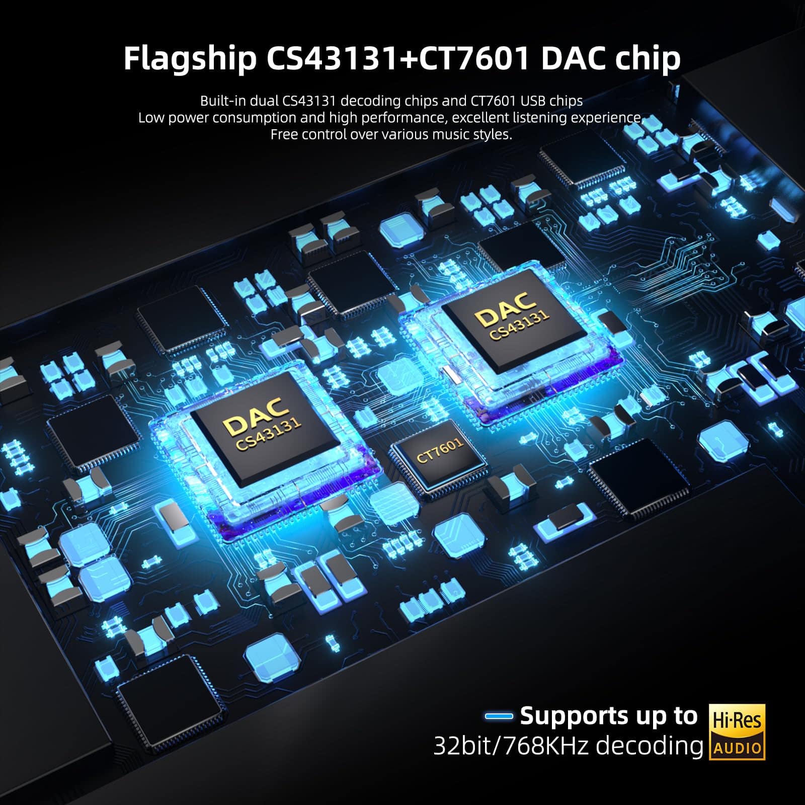 1. Procesamiento de sonido sin pérdidas con el DAC insignia CS43131AC, maneja perfectamente cualquier formato de señal hasta PCM768kHz/32bit y DSD256.