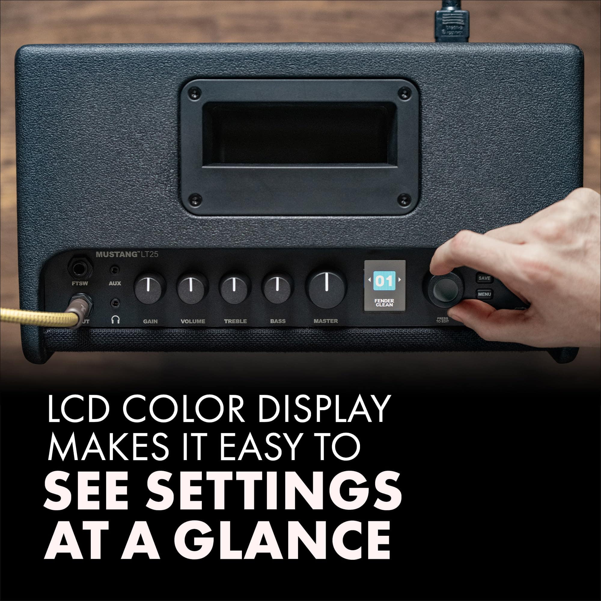 El Mustang LT25 incorpora lo que hemos aprendido durante décadas de producir los amplificadores de guitarra con el mejor sonido del planeta. Es ideal para principiantes y estudiantes, con una interfaz de usuario súper simple y una colección de 30 presets que abarcan una amplia gama de música: los mejores éxitos de tonos de guitarra eléctrica. La versátil cadena de señal con modelos de amplificador y efectos de alta calidad incorporados produce tonos increíbles, convirtiéndolo en un amplificador de práctica ideal para el hogar u oficina. Su gabinete de madera es excelente para aquellos que prefieren la madera sobre sus contrapartes sintéticas. Sus dimensiones son 11.8×14.5×17.1 pulgadas y pesa 14.85 libras. Del fabricante, Mustang LT25 incorpora lo que hemos aprendido durante décadas de producir los amplificadores de guitarra con el mejor sonido del planeta. Es ideal para principiantes y estudiantes, con una interfaz de usuario súper simple y una colección de 30 presets que abarcan una amplia gama de música: los mejores éxitos de tonos de guitarra eléctrica.