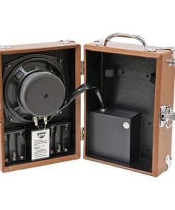 Desde 1972, los amplificadores portátiles Pignose se han visto en la calle, detrás del escenario, en dormitorios, dormitorios, en la playa y en campamentos de montaña en todo el mundo. También es la navaja suiza de los estudios de grabación. El Pignose Legendary 7-100 Portable Amp es su amplificador de práctica portátil original, completo con interruptor de encendido/apagado de hocico de cerdo y control de volumen. El estuche se abre para facilitar el acceso al altavoz y a otras partes internas del amplificador. ¡Incluso puedes pedirle a un amigo que abra y cierre el estuche para lograr un efecto wah-wah! El Legendario Amplificador Pignose también ofrece un jack de salida de preamplificador para enchufar esos clásicos sonidos de distorsión en un amplificador de potencia externo, PA o consola de grabación. Este pequeño Pignose es un amplificador de calidad con protectores de esquina de metal, cubierta resistente y un altavoz resistente de 6 pulgadas. El portátil Pignose Legendary 7-100 pesa solo alrededor de 2KG y funciona con baterías o su fuente de alimentación opcional.