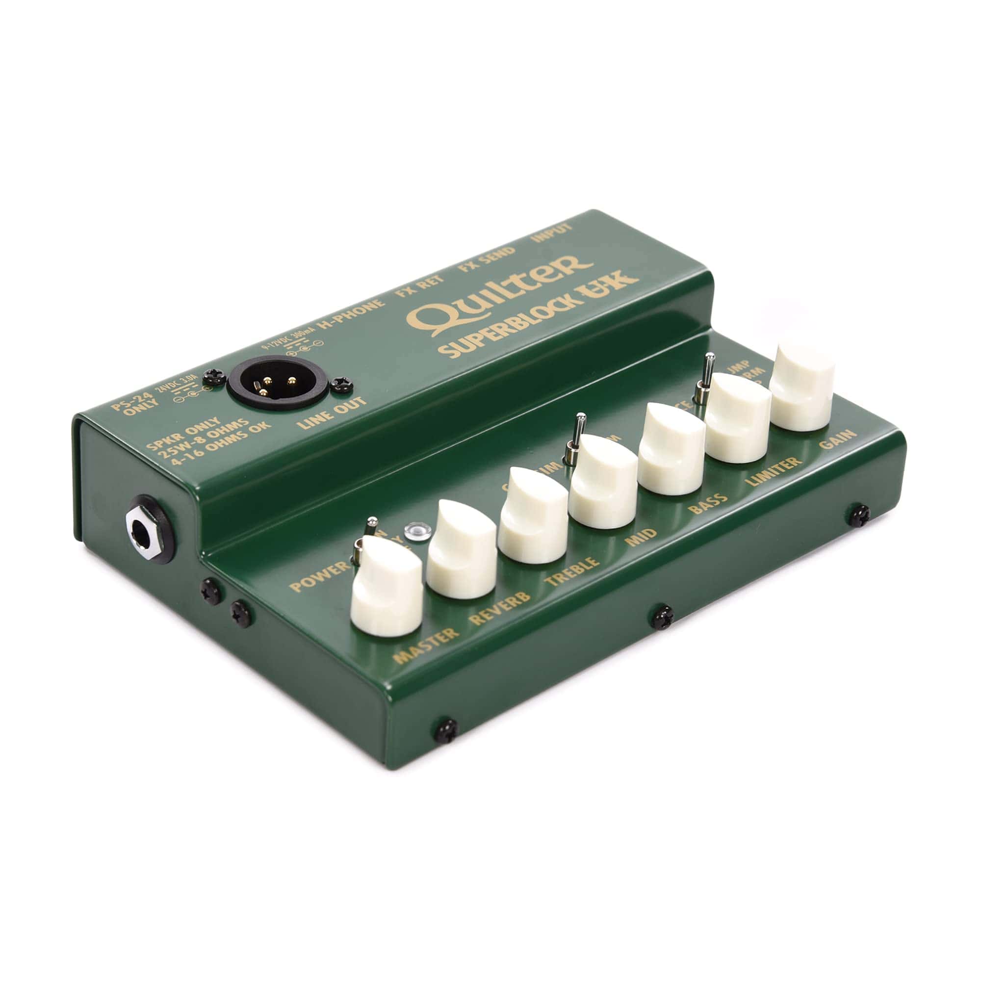 ¡25 vatios de tono de primera calidad para llevar! Quilter Labs ayudó a popularizar el amplificador de pedalboard tal como lo conocemos. Hoy, Pat Quilter trae su excelente ingeniería de amplificador analógico a lo mejor y más brillante de todos: el SuperBlock UK. Este cabezal de amplificador de pedalboard de 25 watts te proporciona toda la potencia que necesitas para impulsar un gabinete de escenario, conducir un sistema de sonido y monitorear directamente desde tu pedalboard. Las tres voces británicas del SuperBlock UK miran hacia atrás en un tiempo electrizante de la historia del amplificador de guitarra con tonos que van desde el tintineo al estilo mop-top y la pompa del rock de estadio, hasta la sobremarcha de alto voltaje del master volumen, todo en un formato fácil de tocar. Al correr directamente, el SuperBlock UK te ofrece dos emulaciones de gabinete conmutable y una lujosa reverberación digital a bordo. En la parte trasera, encontrarás un bucle de efectos para conectar pedales de preamplificador o dejar que tus pedales de reverberación y delay descansen. Para vuelos cortos y desplazamientos, o