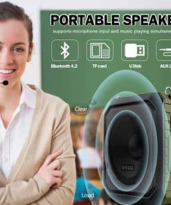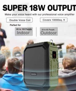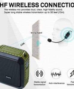 El amplificador de voz inalámbrico de 18W con micrófono de diadema portátil es la solución perfecta para maestros, presentadores, guías turísticos y más. Con su tecnología UHF, ofrece una conexión inalámbrica estable de hasta 15 metros en áreas abiertas, lo que te permite moverte con libertad mientras hablas. Además, su potente salida de 18W garantiza que tu voz se escuche clara y fuerte, cubriendo hasta 10000 pies cuadrados (1000 metros cuadrados). Este amplificador de voz también funciona como altavoz Bluetooth, micrófono de karaoke y admite la reproducción de música desde dispositivos Bluetooth o mediante entrada Auxiliar. Compacto y duradero, este amplificador de voz es IPX5 resistente al agua y está fabricado con materiales de alta calidad para mayor durabilidad. ¡Compra con confianza y eleva tus presentaciones con el amplificador de voz de HaoWorks!