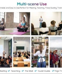 El amplificador de voz inalámbrico con micrófono para la cabeza, 10W 2000mAh (M500UHF). Este amplificador de voz inalámbrico SHIDU M500 UHF es un dispositivo favorito entre maestros, guías turísticos y entusiastas al aire libre, etc., que necesitan mantenerse en contacto con grupos grandes. Su audio de alta potencia y sonido claro le permiten llegar a cualquier audiencia con facilidad. No solo es un buen salvavidas de voz, sino que también soporta tarjeta TF & disco U, lo que le permite disfrutar de la maravillosa música después del trabajo. Aplicación Amplia: El amplificador de voz es un dispositivo ideal que ayuda a difundir mensajes sin ninguna perturbación para Maestros, Jardineros de Infancia, Guías Turísticos, Oradores, Conferenciantes, Presentadores, Instructores de Yoga, Directores de Gimnasio, Promoción de Mercado, Entrenadores y Más. Especificaciones: Potencia de salida: 10W Voltaje de carga: DC5V, 500mA Batería de litio: 3.7V/2000mAh Tamaño del producto: 104 mm x 86mm x 26 mm Peso de la unidad: 194g Tiempo de carga del altavoz: 3-5 horas Tiempo de carga del micrófono: 2-3 horas Tiempo de trabajo: con un 50% de volumen; 5-6 horas (modo musical); 8-10 horas (modo MIC por cable) Cobertura de sonido: 500 m Distancia inalámbrica: 30-35 m Respuesta de frecuencia: 80 Hz-18 KHz Temperatura de trabajo: -10 a 45 Paquete: 1 Amplificador de Voz 1 Cinturón 1 Micrófono inalámbrico UHF 1 Cable USB 1 Cable de audio de 3.5 mm 1 Manual de usuario Consejos: 1. No inserte o enchufe el conector con frecuencia para evitar que el enchufe se afloje. 2. Antes de usar, disminuya el volumen y luego ajuste el volumen según sea necesario. 3. Se sugieren accesorios originales si necesitan ser reemplazados.