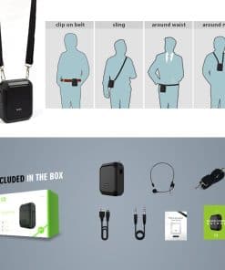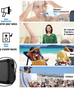 Si desea proyectar su voz en un grupo pequeño o grande en voz alta o disfrutar de una hermosa música mientras se ducha, este amplificador de voz portátil resistente al agua es lo que está buscando. Venga y obtenga este altavoz bluetooth para su uso en actividades especiales al aire libre. Micrófono con Auriculares Ajustable y Cómodo Viene con un micrófono con auriculares con cable ajustable súper ligero y cómodo, puede permanecer en su cabeza bien, no duele su cabeza después de un largo período de tiempo. Rápido y fácil de emparejar su dispositivo Bluetooth con este altavoz bluetooth Encienda el amplificador de voz e ingrese al modo Bluetooth. Luego encienda el bluetooth de su dispositivo, busque SD-M800 y conéctese, se conectará exitosamente con la advertencia de voz ¡Bluetooth conectado! Amplia Aplicación Este altavoz bluetooth portátil M800 es perfecto para exteriores, maestros, canto, entrenadores, presentaciones, instructores de fitness, yoga, personas mayores, guías turísticos o personas que tienen una voz suave, enfermedad de parkinson. Especificaciones del Amplificador de Voz Bluetooth: Potencia de Salida: 18W Capacidad de la Batería: 3.7V, 4400mAh Voltaje de Carga: 5V, 1A Tiempo de Carga: 3-5 horas Tiempo de Trabajo: 10-12 horas (depende del volumen que controle) Consejos cálidos Por favor, cargue primero el altavoz y el micrófono antes de usarlo. El amplificador de voz soporta además del micrófono con cable, micrófono inalámbrico UHF. Al grabar, por favor inserte primero el USB o la tarjeta SD. Amplificador de Voz Portátil para Maestros, Altavoz Bluetooth Impermeable Portátil para Ducha al Aire Libre, Sistema de Micrófono y Altavoz Portátil Recargable Mini Sistema de PA, Altavoz Amp Bluetooth con Micrófono Amplificador de Voz con Auricular 18W Altavoz Bluetooth Portátil Megáfono Altavoz de Voz Altavoz de Amplificación de Potencia Bancaria Resistente al Agua IPX5 para Exteriores, Ducha, Enseñanza, Reuniones, Entrenamiento