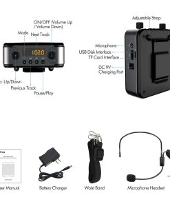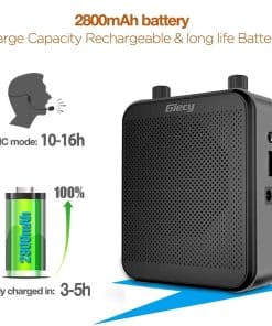 4. Amplificador de voz recargable – Di adiós a comprar constantemente baterías. Este amplificador de voz viene con una batería de litio incorporada de 2800mAh, que se puede cargar por completo en solo 3-5 horas. Disfruta de hasta 12-15 horas de tiempo de amplificación o hasta 8 horas de reproducción de música con una sola carga.