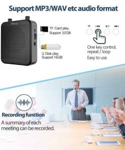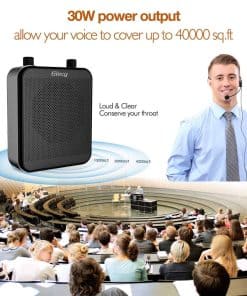 1. Amplificador de voz – La solución perfecta para cuando tienes dificultades para hablar lo suficientemente fuerte, el amplificador de voz personal está aquí para salvar tu garganta. Con una potencia de salida de 30W, ofrece un sonido claro y suave que puede cubrir un área impresionante de aproximadamente 20,000 pies cuadrados (1000 pies), lo que lo hace ideal para habitaciones grandes o entornos exteriores.