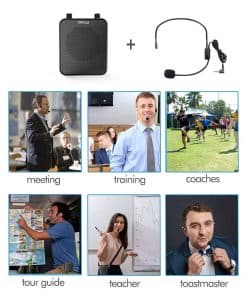 3. Amplificador de voz para profesores – Equipado con un micrófono de diadema, este amplificador de voz Bluetooth portátil es perfecto para profesores, oradores o cualquier persona que se dirija a un grupo grande. Llévalo contigo a aulas, eventos al aire libre o juegos de bingo, y habla con confianza a audiencias de 100 o más miembros.