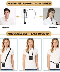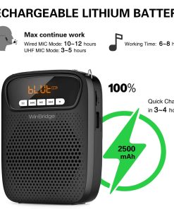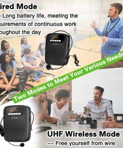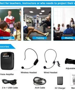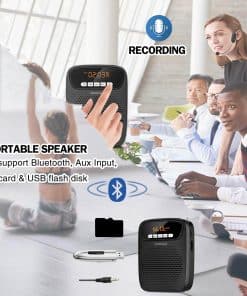 Amplificador de Voz Inalámbrico Bluetooth S278UHF Micrófono Inalámbrico Portátil, Libertad Inalámbrica, Hecha Simple. El amplificador de voz S278UHF es una excelente manera de ser escuchado y llamar la atención, puede ser utilizado por maestros, instructores, guías turísticos y en una multitud de otras profesiones. Comprar el amplificador adecuado puede ayudarte a destacar en tu trabajo. El altavoz del micrófono de diadema inalámbrico ahorra tu voz y ofrece una calidad de sonido confiable. Excelente portabilidad con un tamaño compacto y peso ligero. El amplificador de voz portátil se puede llevar fácilmente en el hombro o la cintura sin causar ninguna molestia. La batería recargable de 2500mAh proporciona hasta 12 horas de uso continuo. El micrófono de diadema inalámbrico dura de 3 a 5 horas. El amplificador de voz personal se puede utilizar como altavoz portátil. El S278UHF tiene Bluetooth 5.0 incorporado con un alcance de funcionamiento de hasta 33 pies. Conexión fácil a Bluetooth, entrada AUX, TF/USB. Puede grabar audio transmitido a través del micrófono con una tarjeta USB/TF insertada.