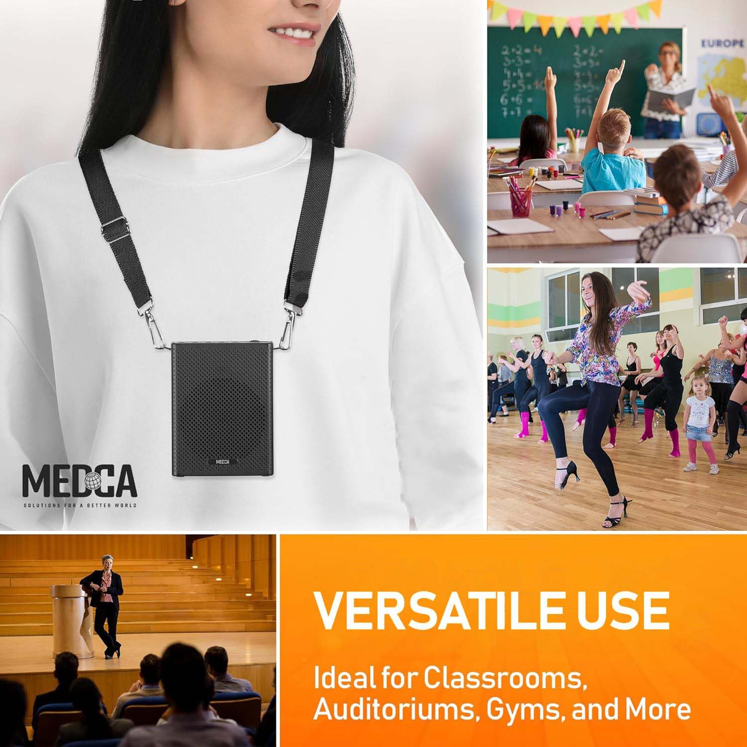 Te presentamos el Amplificador de Voz Portátil de MEDca, la solución definitiva para amplificar tu voz en cualquier entorno. Con una amplificación de sonido nítida y clara, este auricular con micrófono para hablar garantiza que te escuchen alto y claro, ya seas maestro, instructor de fitness, presentador, artista, entrenador o guía turístico. Desde aulas hasta auditorios, gimnasios hasta tiendas minoristas, clubes hasta centros de eventos, nuestro amplificador mejora la comunicación en cualquier entorno, haciéndolo indispensable para diversos eventos y escenarios.