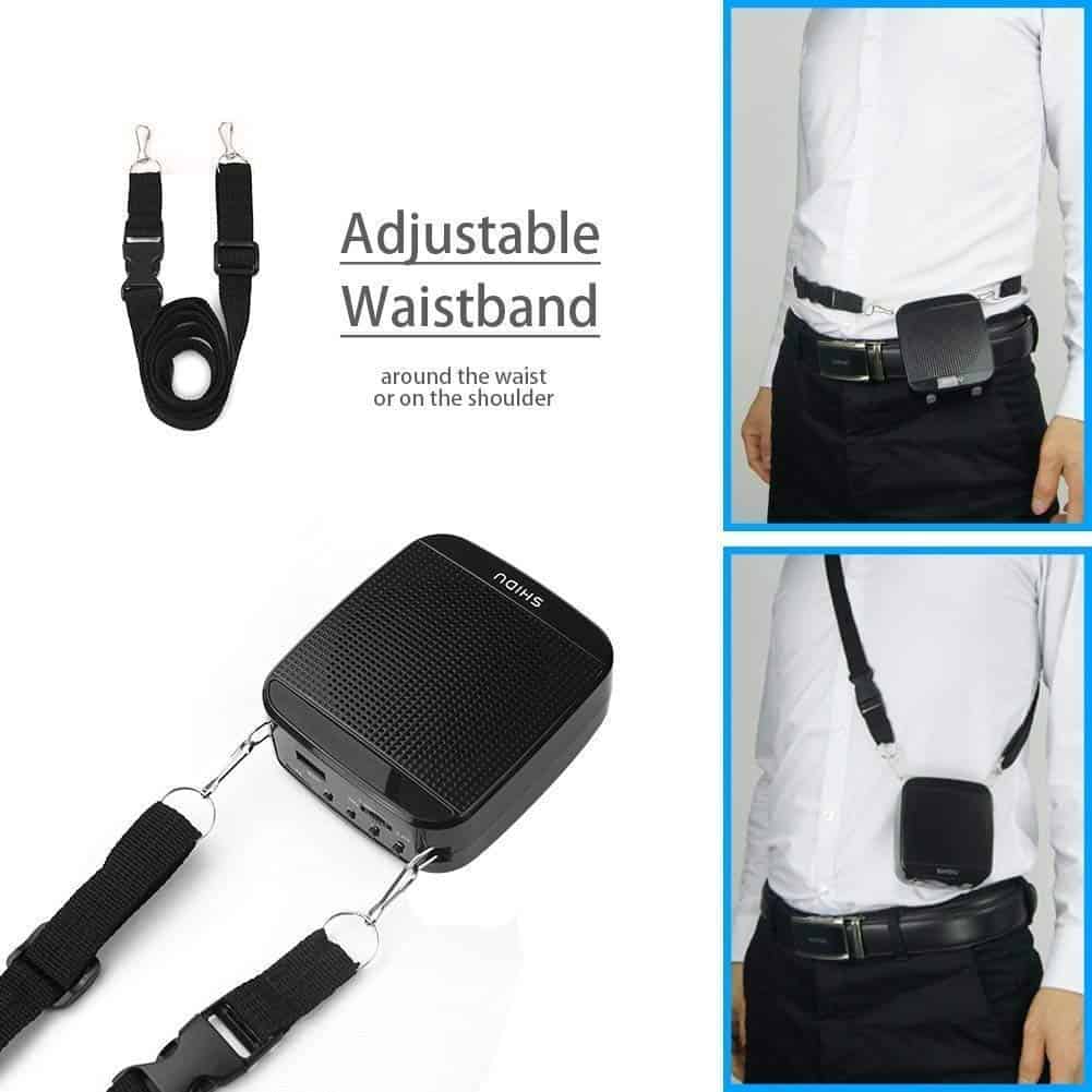 4. Ligero y fácil de usar – El pequeño y ligero altavoz de micrófono se puede colocar alrededor de la cintura o llevar alrededor del cuello con el cinturón o la banda de la cintura suministrada en el paquete. Muy fácil de llevar. La operación es sencilla. Simplemente conecte el auricular y encienda el amplificador de voz.