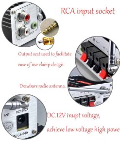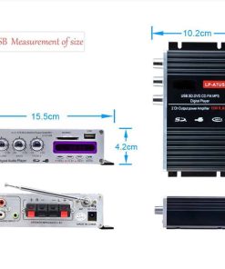 Panel frontal: control de volumen con interruptor, ajuste de graves, ajuste de agudos botones del reproductor MP3 Panel trasero: terminales de salida de altavoz son abrazaderas, la entrada de señal es salidas Lotuses, 2 canales de salida Antena de varilla Suministro de energía: DC12V, carro, motocicleta, MP3, casa, audiófilos se combinan, energía, fuerte, agudos nítidos, voces de alto y bajo moderado, es una primera opción para los entusiastas del audio, cableado simple, no entender circuitos puede ser, casa y carro pueden ser, amplificador con control de volumen, potenciómetros de ajuste de agudos y bajos, y LEDs