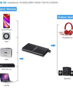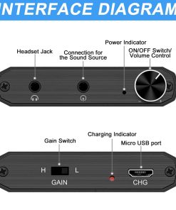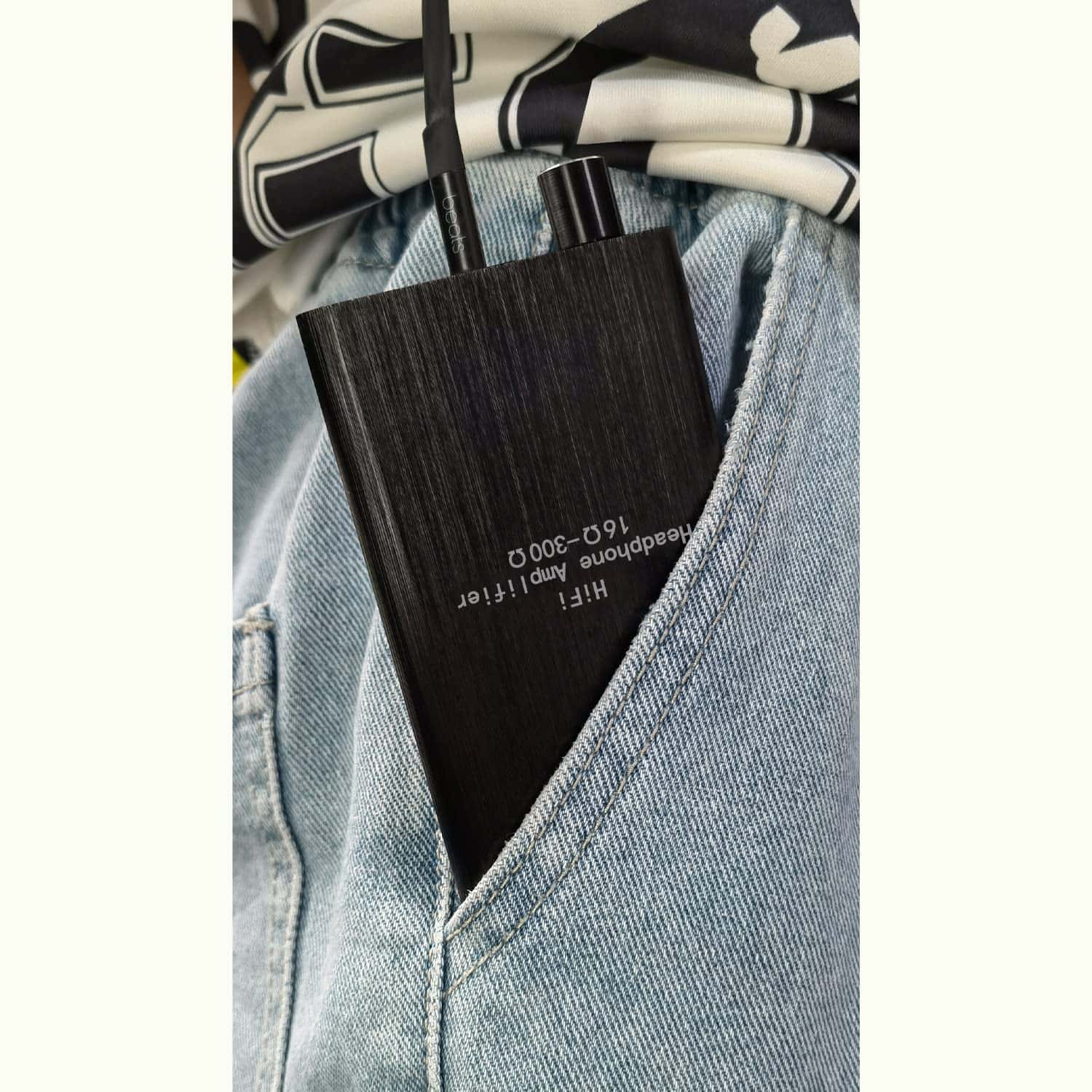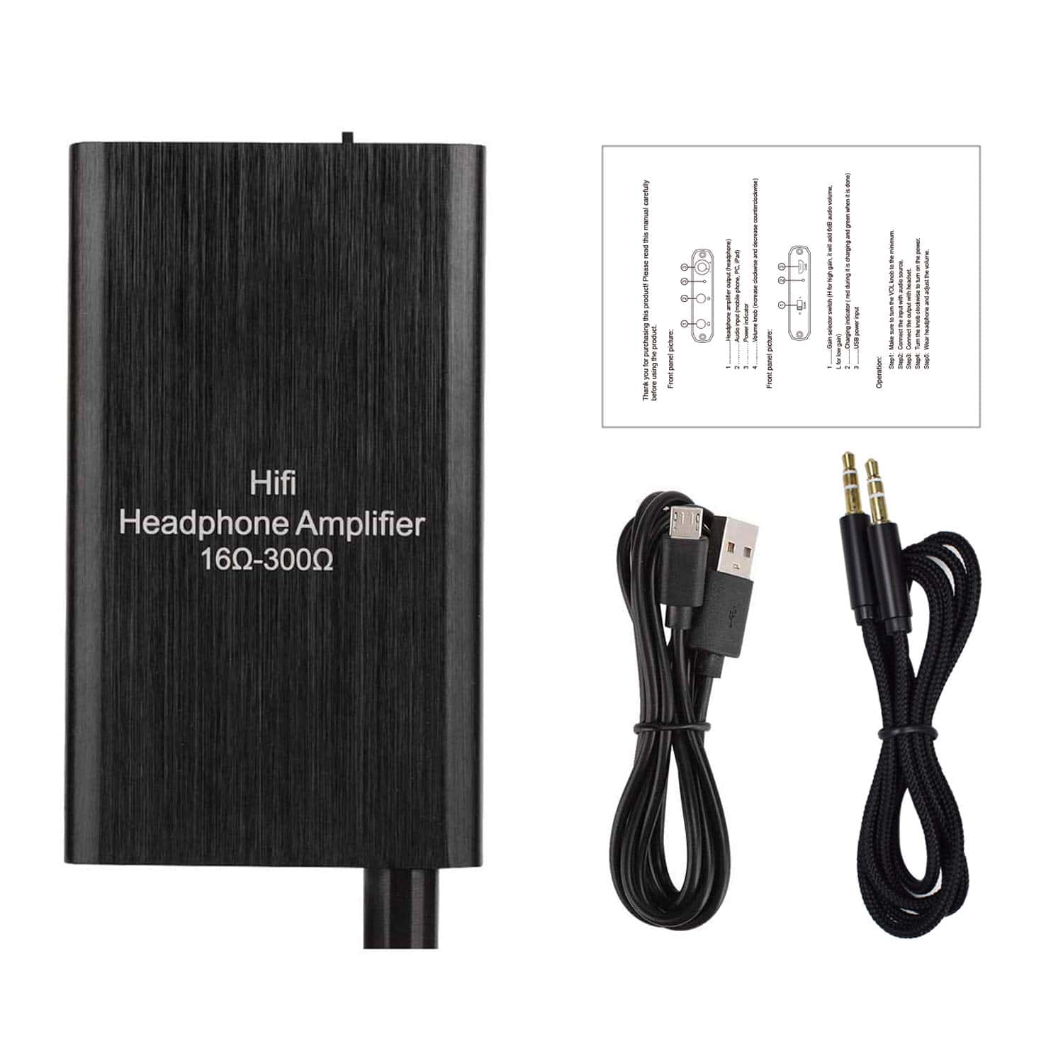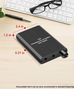 2. Amplificador de auriculares portátil: Amplificador compacto con estuche de metal negro cepillado, estructura resistente, ligero y pequeño, puede caber fácilmente en un bolsillo para llevarlo, fácil de transportar.