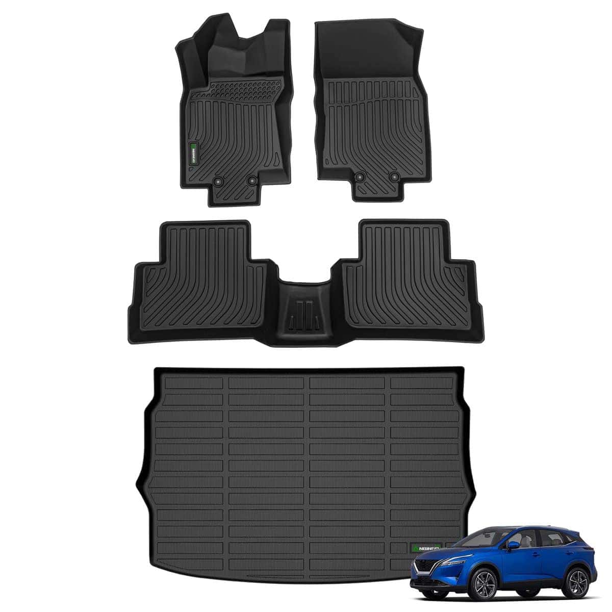 ANBINGO-Floor Mats & Cargo Liner es un juego de alfombrillas y revestimiento de carga diseñado específicamente para adaptarse al Nissan Rogue Sport 2017-2022, estando destinado únicamente para la parte superior de la cajuela en la posición más alta. El juego incluye alfombrillas para las filas delantera y trasera, así como un revestimiento para el maletero. La tecnología de escaneo láser 3D garantiza que las alfombrillas cubran por completo el piso del automóvil y se ajusten perfectamente al cuerpo del vehículo.