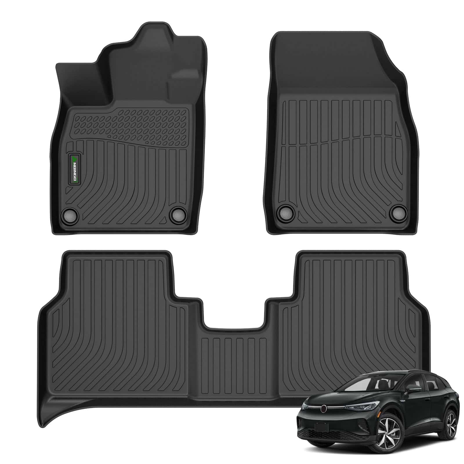 ANBINGO- Tapetes Personalizados para VW ID.4 2021-2024 TPE Todo Clima Impermeable VW ID4 Forros de Piso 1ra y 2da Fila Accesorios para Autos, Negro. Los tapetes ANBINGO para el ID.4 del 2021 al 2024 están diseñados con un escaneo de precisión láser 3D que coincide exactamente con los datos originales del automóvil. Con un diseño de ajuste de borde personalizado y un diseño de labio reforzado que bloquea derrames y cualquier otro líquido, manteniendo tu automóvil y sus contenidos limpios. Este tapete para piso personalizado destaca por su diseño sobresaliente que hará que tu ID4 se destaque en la carretera.