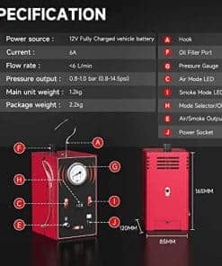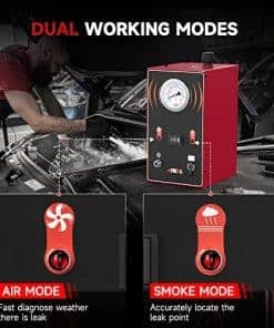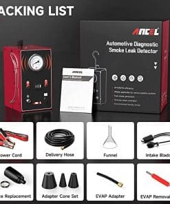 ANCEL S200 Máquina de Humo Automotriz con Bomba de Aire Incorporada y Manómetro, Detector de Fugas de Humo Evap, Probador de Fugas de Vacío de Doble Modo Sistema de Combustible para Todos los Autos/Motos/Camiones te permite localizar todos los tipos de fugas en vehículos de una manera rápida y precisa. Desde fugas comunes hasta pequeñas fugas de piezas rotas, podrás detectarlas todas con este detector profesional de fugas de humo automotriz. Su capacidad para localizar más del 99% del punto de fuga en pocos minutos al emitir un humo espeso y consistente lo convierte en una herramienta esencial para la detección de fugas en sistemas EVAP, fugas de vacío, fugas de turbo de baja presión, admisión de múltiples, sistemas de enfriamiento/EGR/escape, cauchos gastados, juntas, sellos, conectores y más. Además, ANCEL S200 viene con una tecnología de transferencia de calor actualizada en 2024 que le brinda una mayor seguridad de uso y una facilidad de operación. Su modo de trabajo dual y manómetros de presión visual te permiten realizar una detección precisa de fugas con resultados confiables. Adicionalmente, la máquina está equipada con suficientes accesorios que hacen que el proceso de detección de fugas sea más efectivo y sencillo. ANCEL S200 es sin duda una inversión inteligente para cualquier propietario de vehículo, ya que es más económico que llevar el vehículo al taller y te permite eliminar las conjeturas al reemplazar las partes gastadas correctas para mantener el rendimiento del vehículo. Esta compacta herramienta de garaje ha demostrado ser un salvavidas para muchos dueños de vehículos al ahorrarles tiempo y esfuerzo al localizar de manera rápida y eficiente las fuentes de las fugas. No pierdas la oportunidad de adquirir la máquina de humo automotriz ANCEL S200 y mejorar tu experiencia en la detección de fugas en vehículos. ¡Haz clic en el botón de compra ahora y obtén un equipo confiable y eficaz para tu garaje!