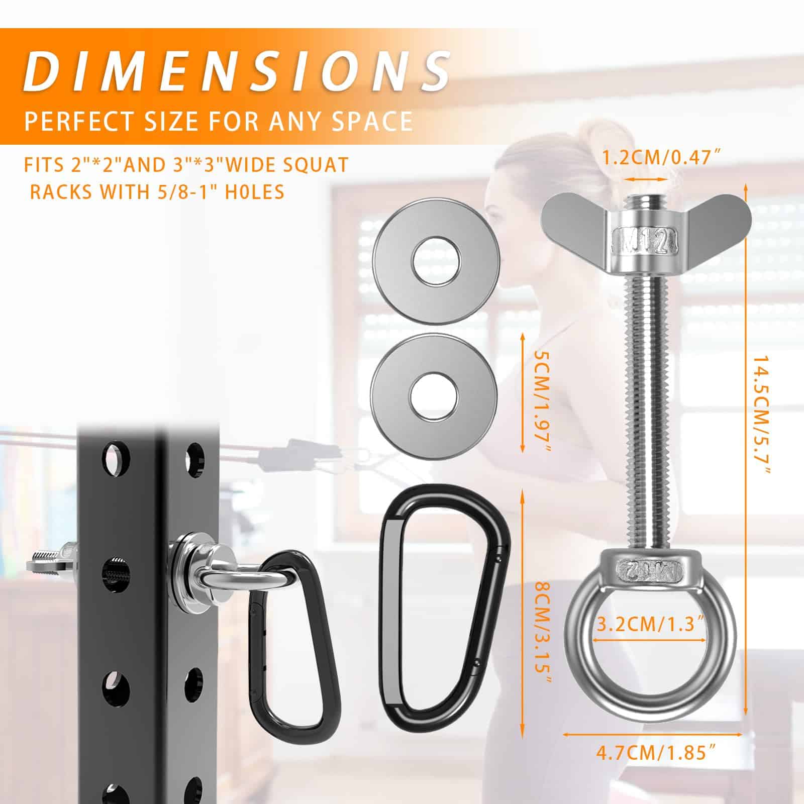 Este anclaje de rack universal está fabricado con acero inoxidable premium, compatible con racks de potencia de 5/8″ y 1″ para una sujeción segura durante los entrenamientos con bandas de resistencia. Con un mosquetón extra grande, se adapta fácilmente a bandas de resistencia más anchas y varios accesorios de gimnasio para entrenamiento de fuerza, trabajo de movilidad y estiramiento. Este accesorio multiusos también puede servir como gancho de almacenamiento, ayudando a mantener tu gimnasio organizado y libre de desorden. La instalación es rápida y sencilla con un sistema de perno y tuerca resistente, asegurando máxima estabilidad para ejercicios de alta tensión. Construido para durar, la construcción resistente a la corrosión garantiza durabilidad tanto en gimnasios en casa como en centros de fitness comerciales.