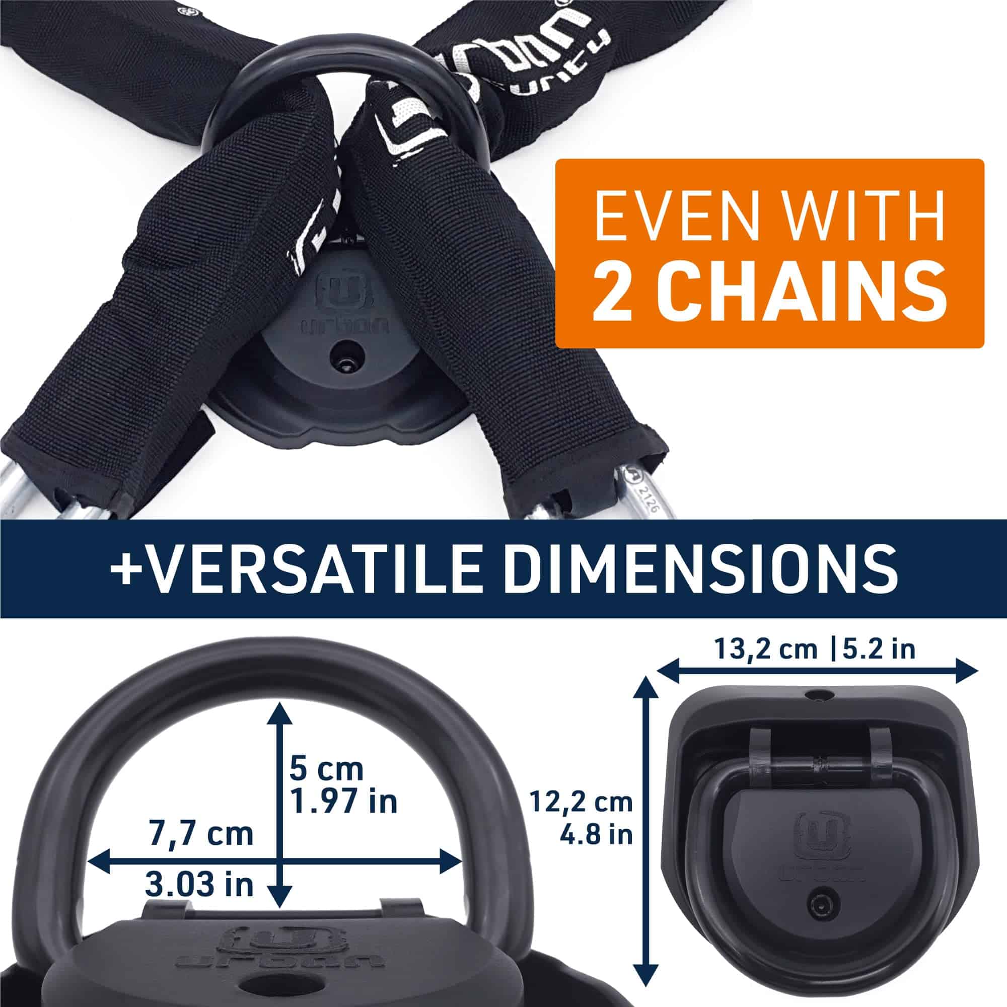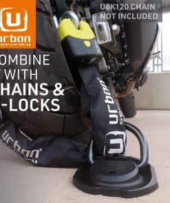 Es UNIVERSAL por lo que se puede combinar con cualquier candado o cadena de tipo U para motocicletas, scooters o bicicletas. En combinación con un dispositivo anti-robo aprobado por SRA de URBAN ofrece una seguridad muy alta.