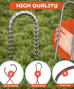 Los anclajes de suelo en forma de U de Happin son la solución definitiva para asegurar tus equipos al aire libre con confianza y facilidad. Diseñados para una estabilidad superior, estos anclajes de suelo pesados aseguran firmemente trampolines, cobertizos, carpas, cercas y más en su lugar, incluso frente a vientos fuertes y condiciones climáticas adversas. Ya sea que busques estacas de cerco para evitar que tu perro cave, un kit de anclaje para trampolín o anclajes de lona versátiles, las estacas de suelo de Happin ofrecen un rendimiento y fiabilidad superiores. Su diseño en U asegura un agarre seguro y estable, mientras que la construcción de acero galvanizado y el recubrimiento plateado resistente al óxido proporcionan una durabilidad inigualable, protegiendo contra la oxidación y la deformación para un uso duradero. Este conjunto completo incluye 8 estacas en forma de U y un kit de herramientas práctico para facilitar la instalación sin esfuerzo. Las herramientas incluidas facilitan anclar tu trampolín o equipo de exteriores sin necesidad de suministros adicionales ni pasos complicados. Ya sea que asegures un kit de anclaje para trampolín, instales anclajes de suelo para cobertizos o configures estacas enroscables para un columpio o carpa de jardín, las estacas de Happin están diseñadas para que el proceso sea lo más sencillo y eficiente posible. La versatilidad de estos anclajes metálicos para el suelo los convierte en un artículo imprescindible para una amplia variedad de aplicaciones. Úsalos como estacas para trampas en aventuras al aire libre, anclas para equipo de campamento o anclajes de suelo para cobertizos, carpas de playa, toldos, porterías de fútbol o cercas de jardín. Sea cuales sean tus necesidades, los anclajes de trampolín pesados de Happin están a la altura del desafío, proporcionando un agarre seguro y estable en el que puedes confiar. En Happin, estamos orgullosos de diseñar productos que priorizan la seguridad y la calidad. Como una marca confiable con sede en Estados Unidos, entendemos la importancia de proteger lo que más importa, por eso nuestro kit de anclaje para trampolín está diseñado para soportar condiciones difíciles mientras garantiza la tranquilidad. Ya sea asegurando el trampolín de tu hijo o protegiendo tu cobertizo de jardín.