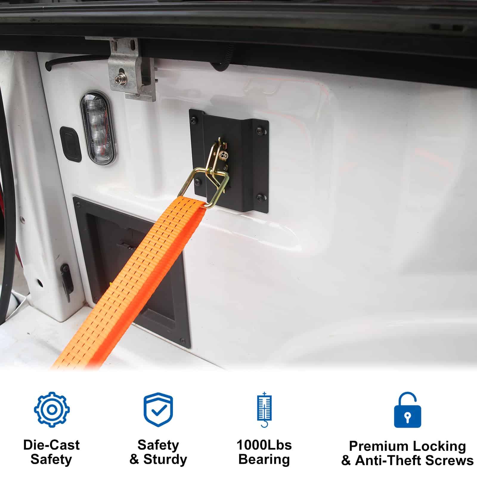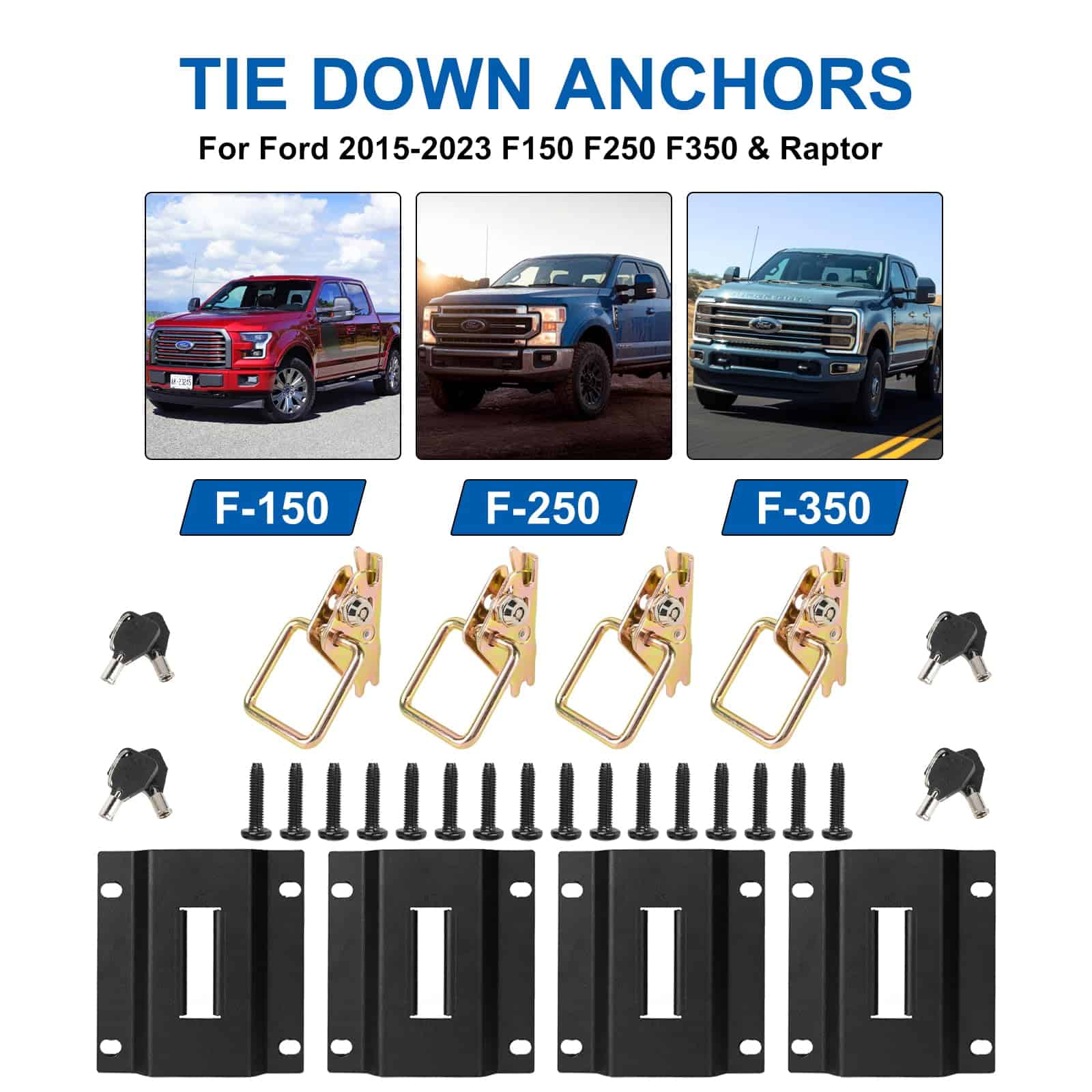 1. Anclas de amarre compatibles con accesorios para Ford F150 F250 F350 & Raptor 2015-2023. Reemplace FL3Z-99000A64-B, FL3Z-9928408-AB. También puede usar accesorios E-Track para reemplazar el ancla y satisfacer sus diferentes necesidades. 2. Las anclas para cama de f150 están construidas de zinc fundido con ensamblaje de cerradura de acero inoxidable y carcasa resistente para durabilidad, confiabilidad y solidez. Revestimiento en polvo negro resiste la corrosión. No se preocupe por el óxido en los pernos. 3. Nuestras robustas anillas cuadradas se pueden usar al aire libre o en interiores en remolques cerrados o abiertos, camiones, vans, cobertizos, talleres y más. El anclaje de amarre puede agregar puntos de fijación adicionales para facilitar el transporte de más mercancías y ayudar a asegurar objetos en su cama de camión, evitando daños causados por el balanceo aleatorio de artículos en el vehículo y previniendo ruidos. 4. Las anclas de amarre para Ford están diseñadas para instalarse en segundos. Simplemente colóquelas en las posiciones correctas de la cama de su camión, use tornillos para apretar los 4 agujeros. Compatible con camiones Ford con anclas de amarre desmontables. 5. Las anclas de amarre para cama de Ford también vienen con 4 cerraduras y llaves de acero inoxidable. Si no está completamente satisfecho con sus accesorios para cama de camión Z8, no dude en contactarnos. Además, nuestro producto está respaldado por una garantía de 24 meses, brindándole tranquilidad y confianza en su compra.