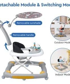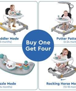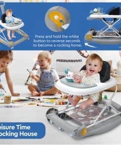 1. Andador para bebés 5 en 1: El andador para bebés se puede convertir fácilmente en 5 modos, incluyendo modo de andador para bebés, modo combo saltador, modo mecedor, modo mesa de comer y modo de empuje manual. Andador para bebés que satisface las necesidades de las diferentes etapas de exploración y crecimiento del bebé y se adapta al bebé, adecuado para bebés de 6 a 24 meses.